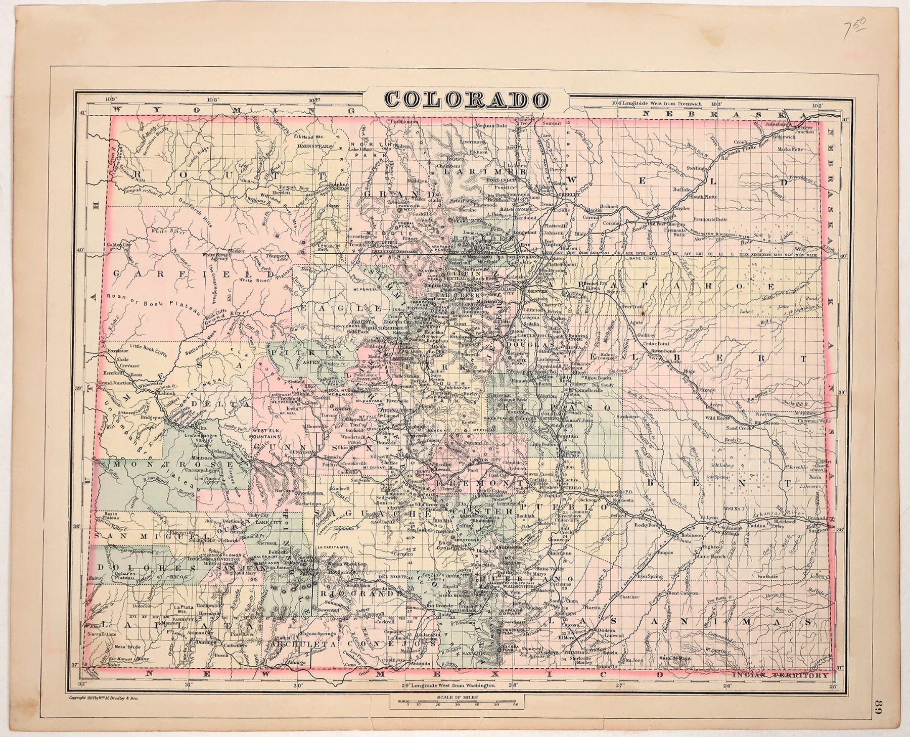 Bradley, 1887, 12.5" x 15.2", hand colored, very good. Colorado is on the other side