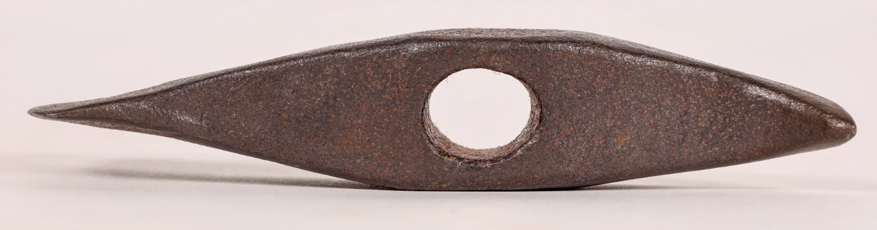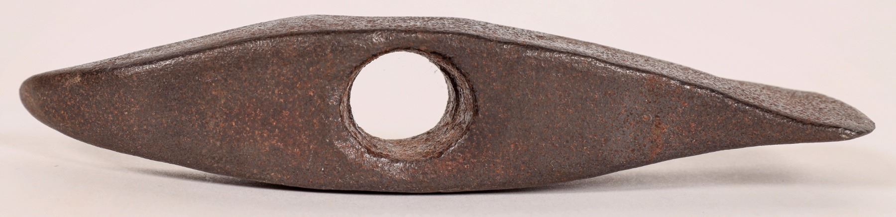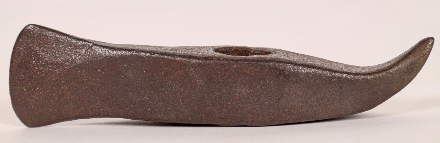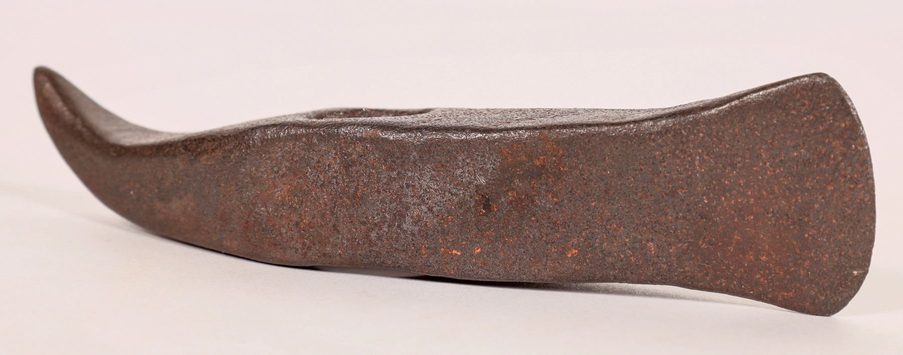 This hand forged tomahawk head is 5.75 in. long with a 3/4 in. opening for a handle. From the Indian Wars era of Colonial America. C. 1750-1780. 13 oz.