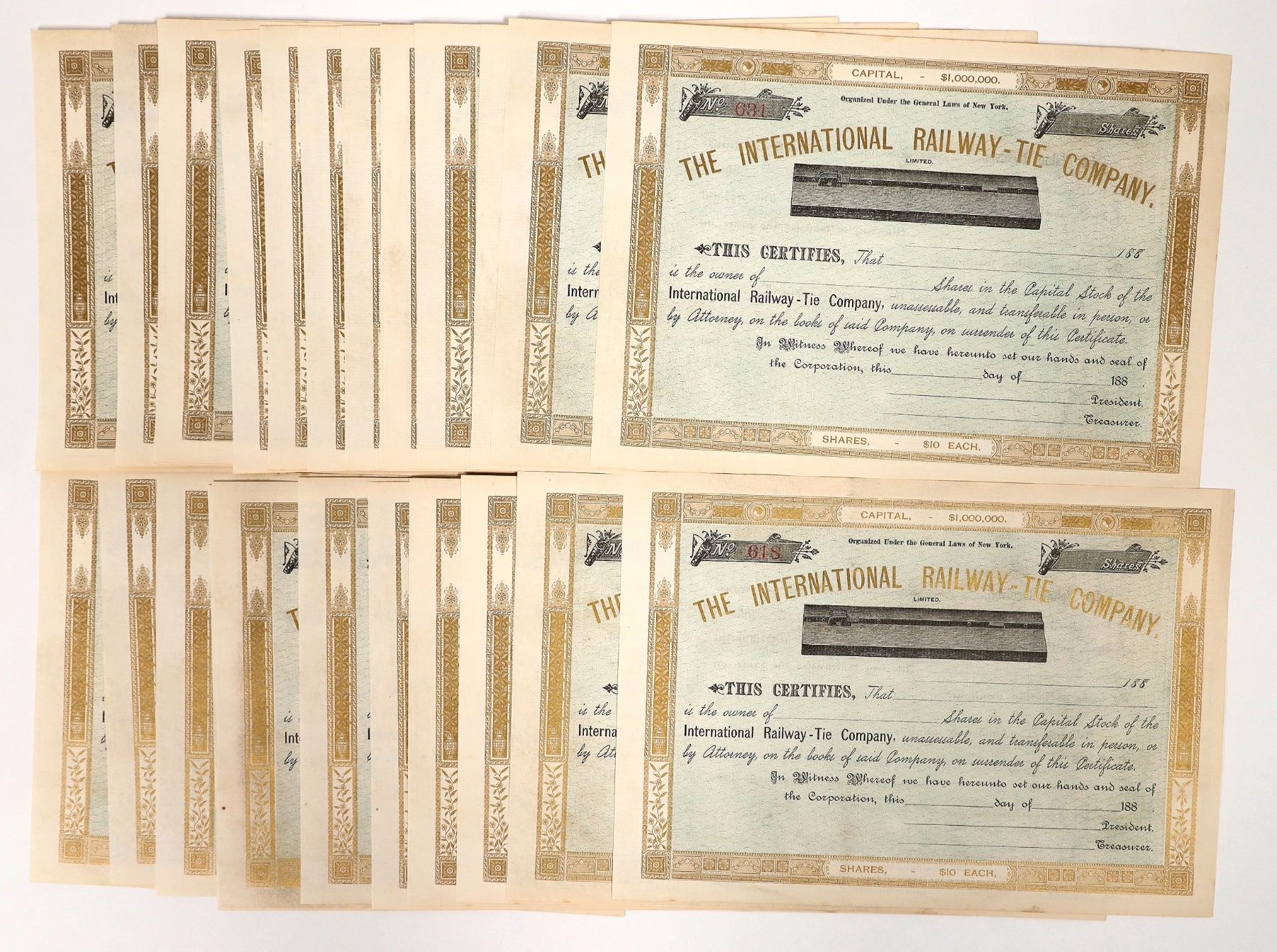 About 25 unissued International Railway-Tie stock with tie vignette.