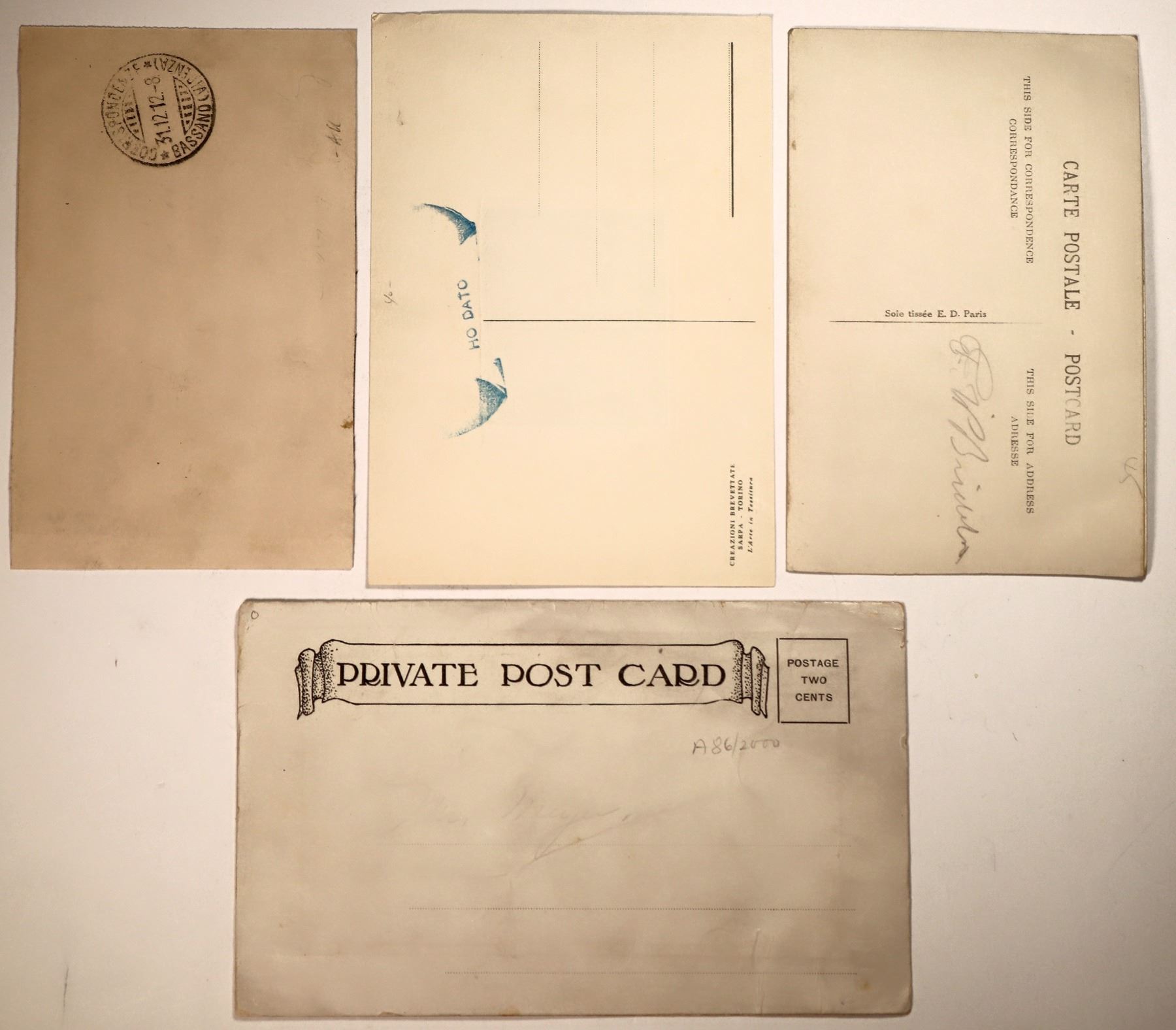 Silk woven postcards (4) from Italy, France & Canada. Two have postmarked, but no text. scenes include Toronto University, Basilica San Pietro, and amore. All are in nice condition. Please see photos for more details.[ Europe