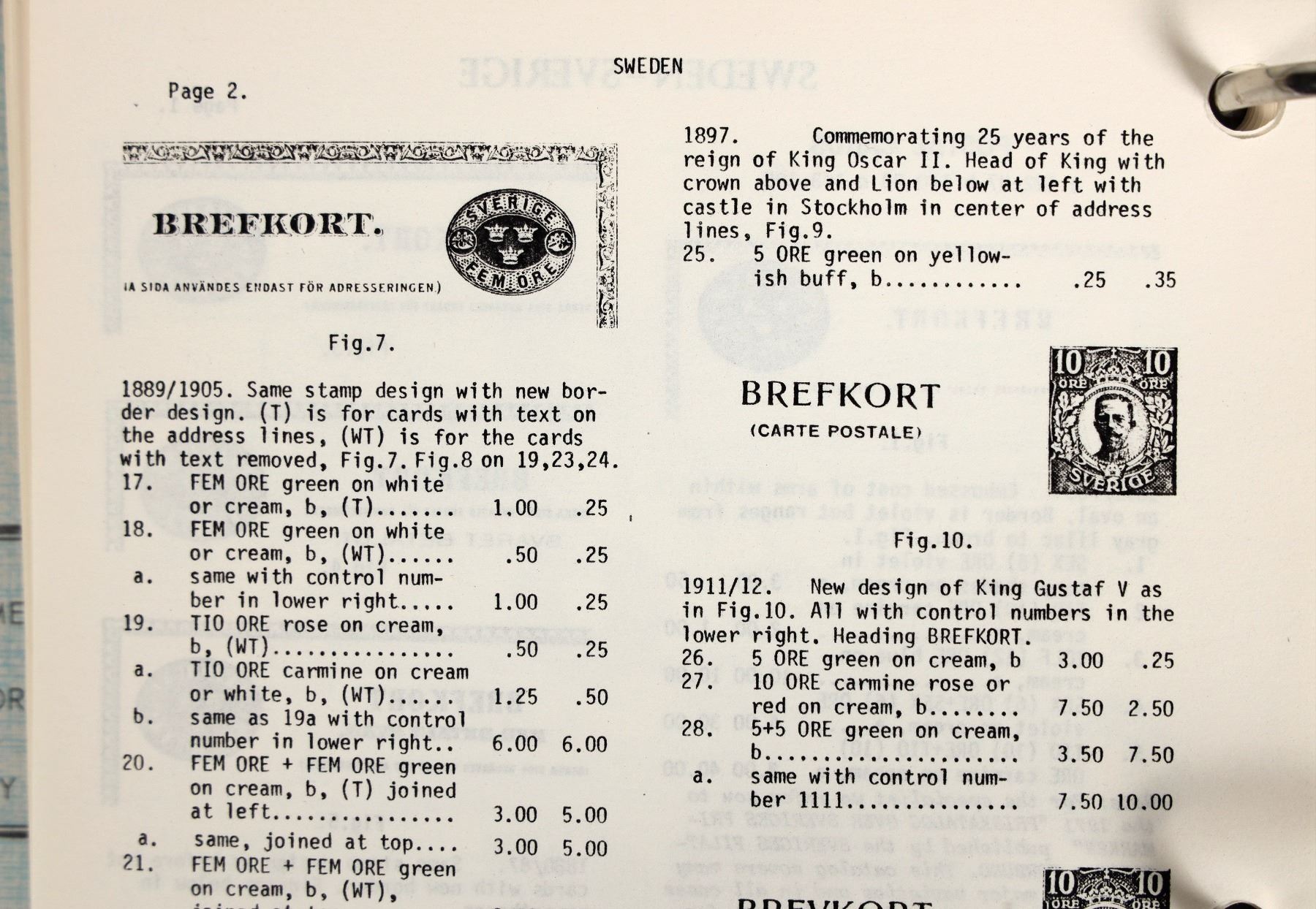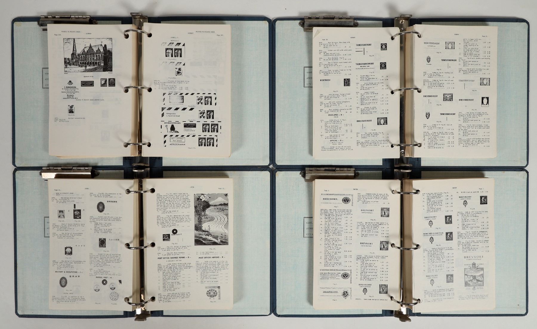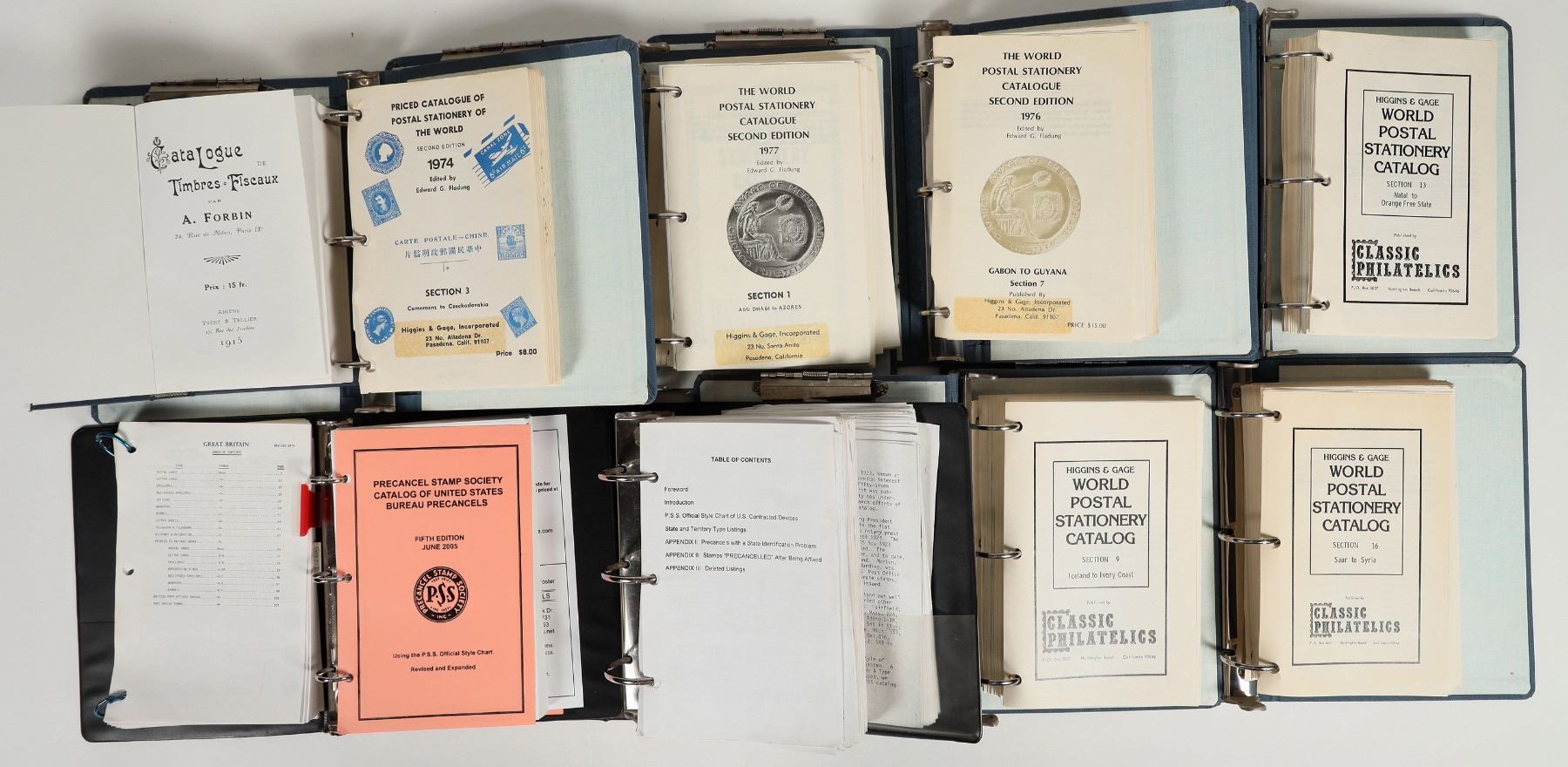 Group of 10 stamp guidebooks, including references for countries all over the world. 8 are bound in binders, 1 is bound w/ metal rings, 1 is a hardback book. Good condition.