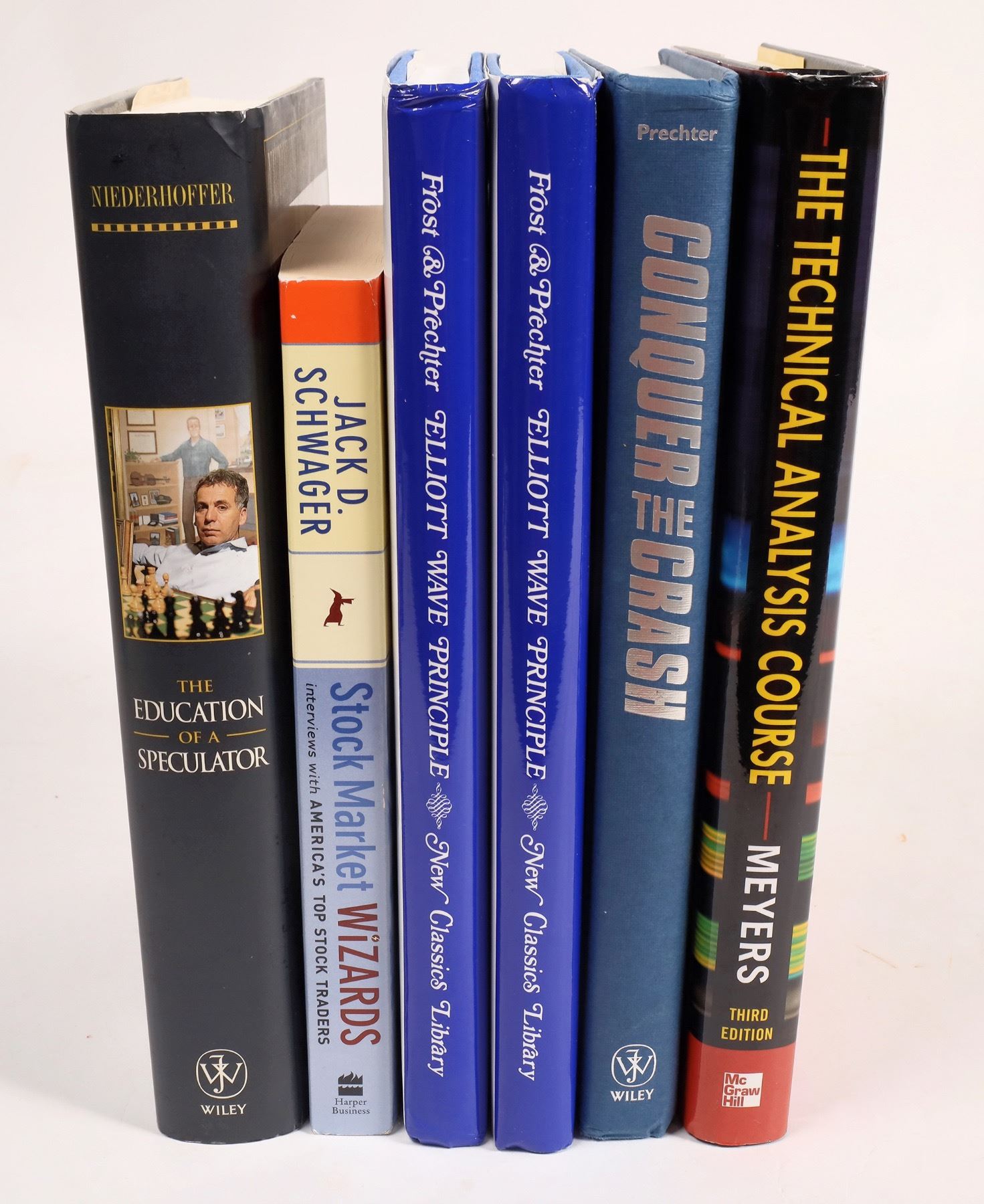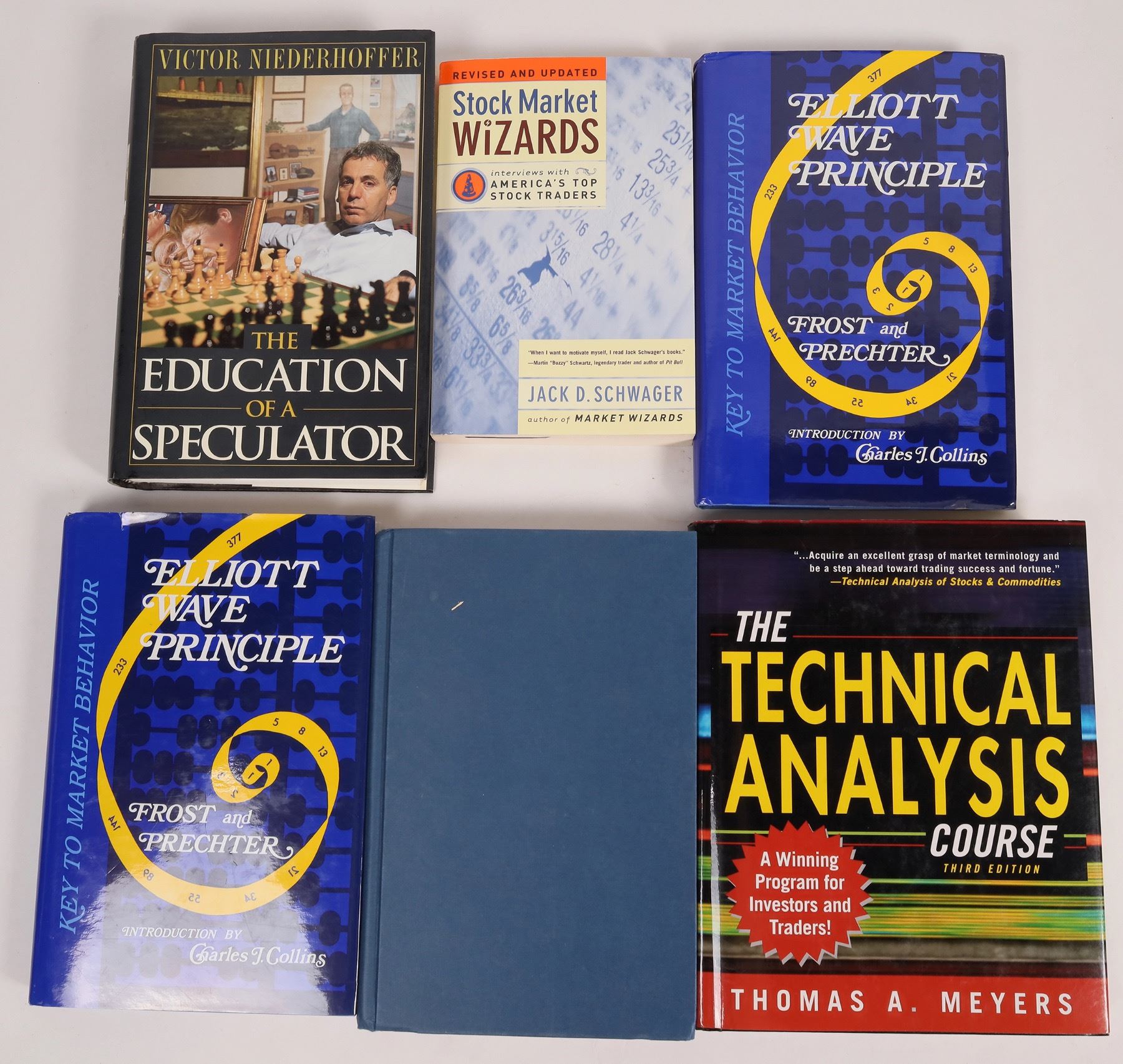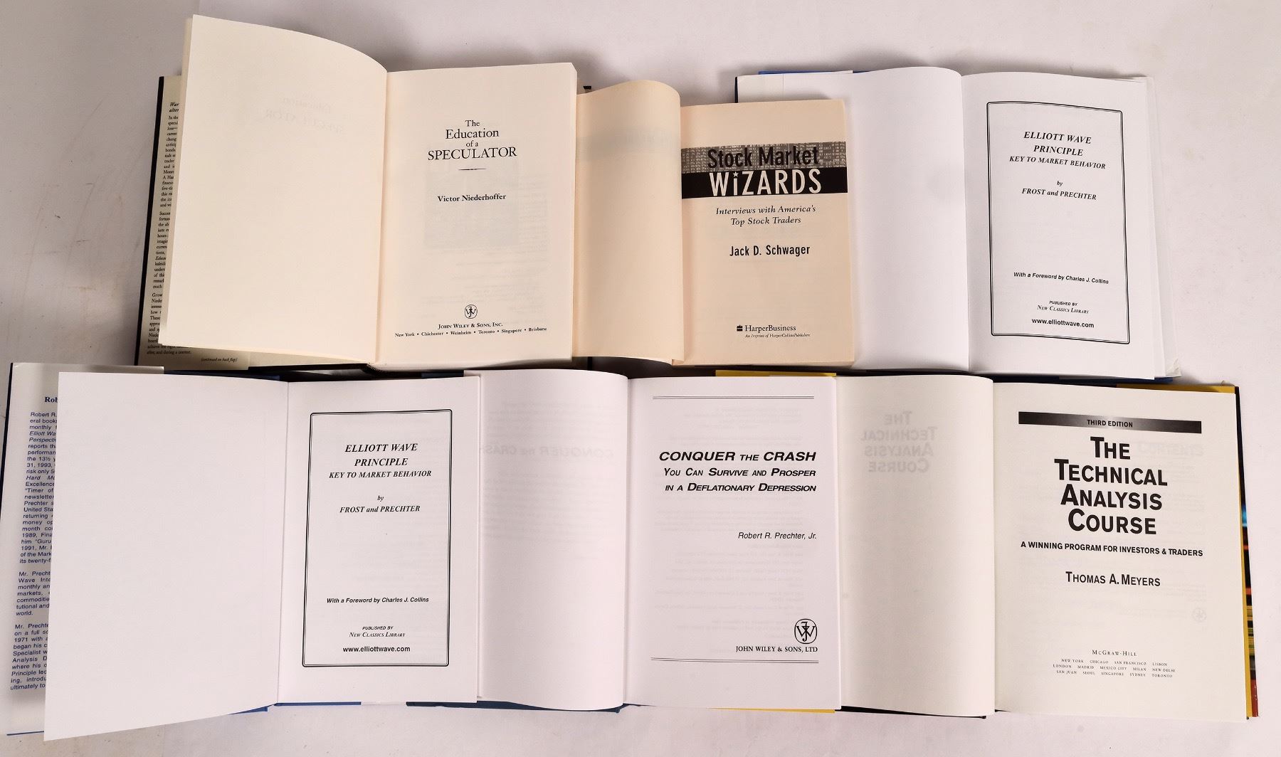 5 investing books. Stock Market Wizards by Schwager. The Education of a Speculator by Niederhoffer. Conquer the Crash by Wiley. The Technical Analysis Course by Meyers. 2x Elliot Wave Principal by Frost.