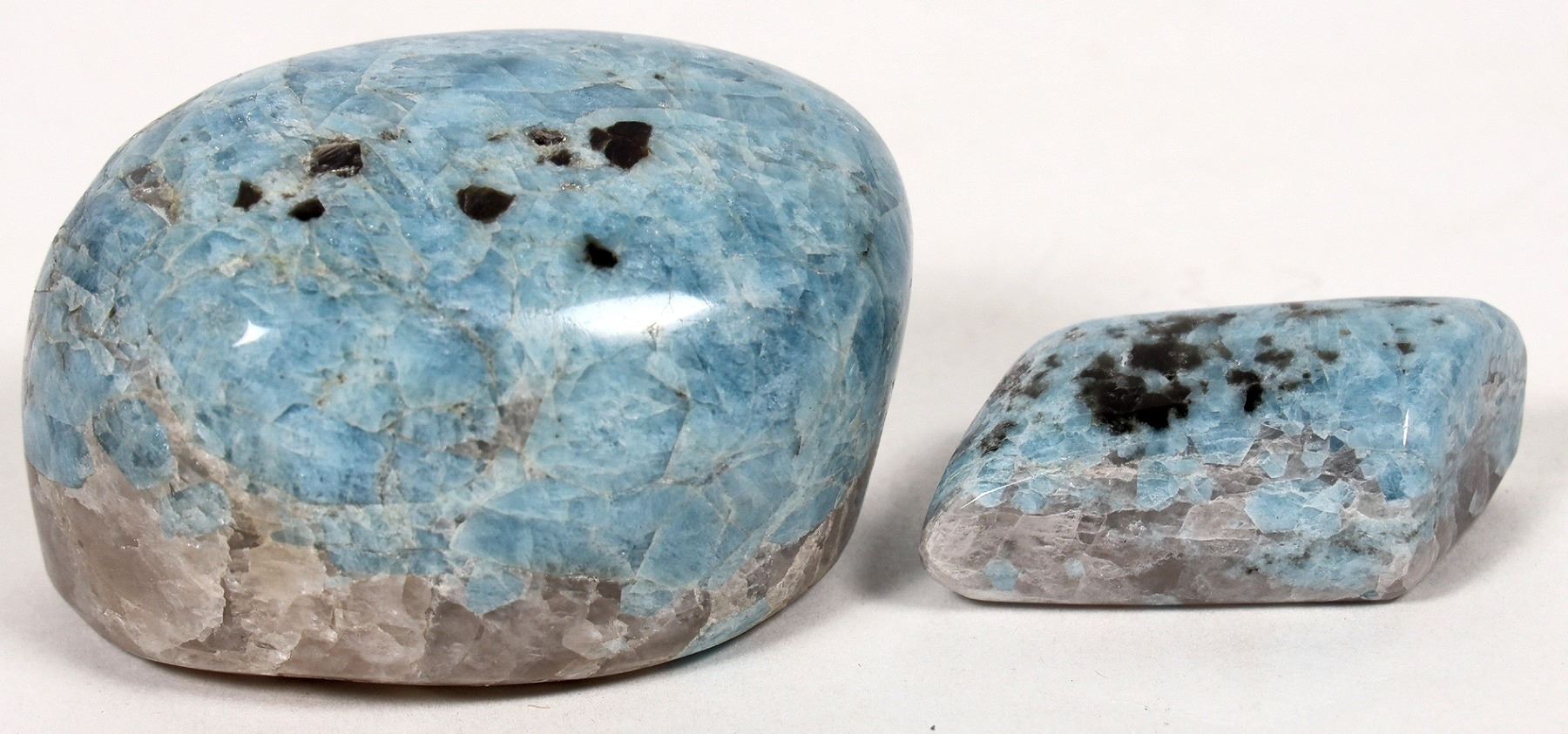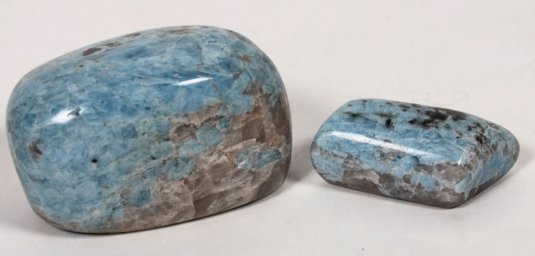 2 polished blue beryl from Haystack Mountain near Lone Pine. 1.25x.75x.38" and 1x1x1.75".