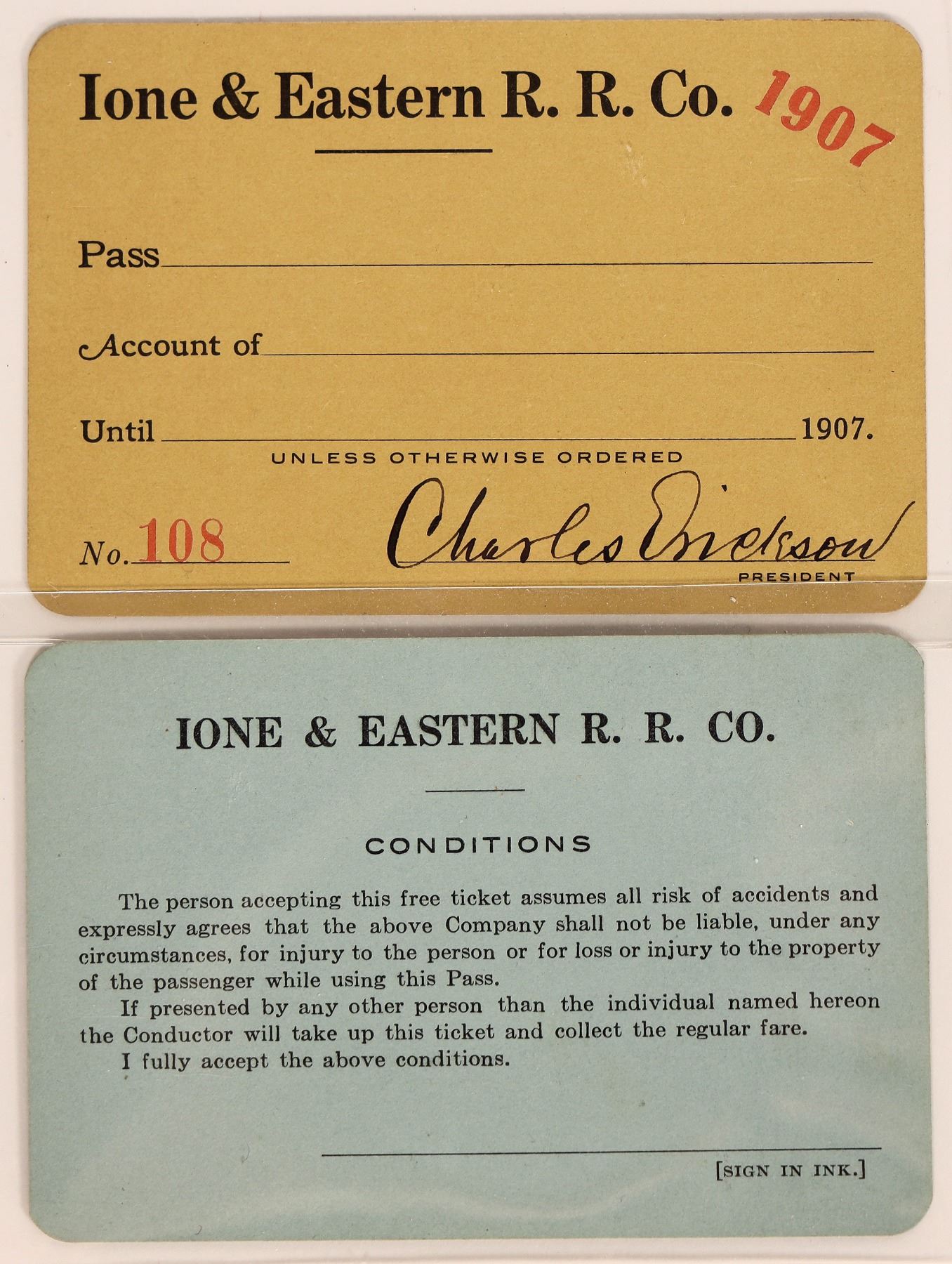 Ione & Eastern RR Co. pass 1907/08 [179654]