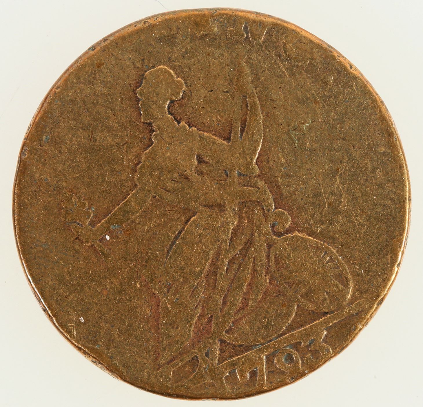 Brass token bearing an image of physicist and polymath Isaac Newton on the obverse and Britannia on the reverse. RARE indeed!