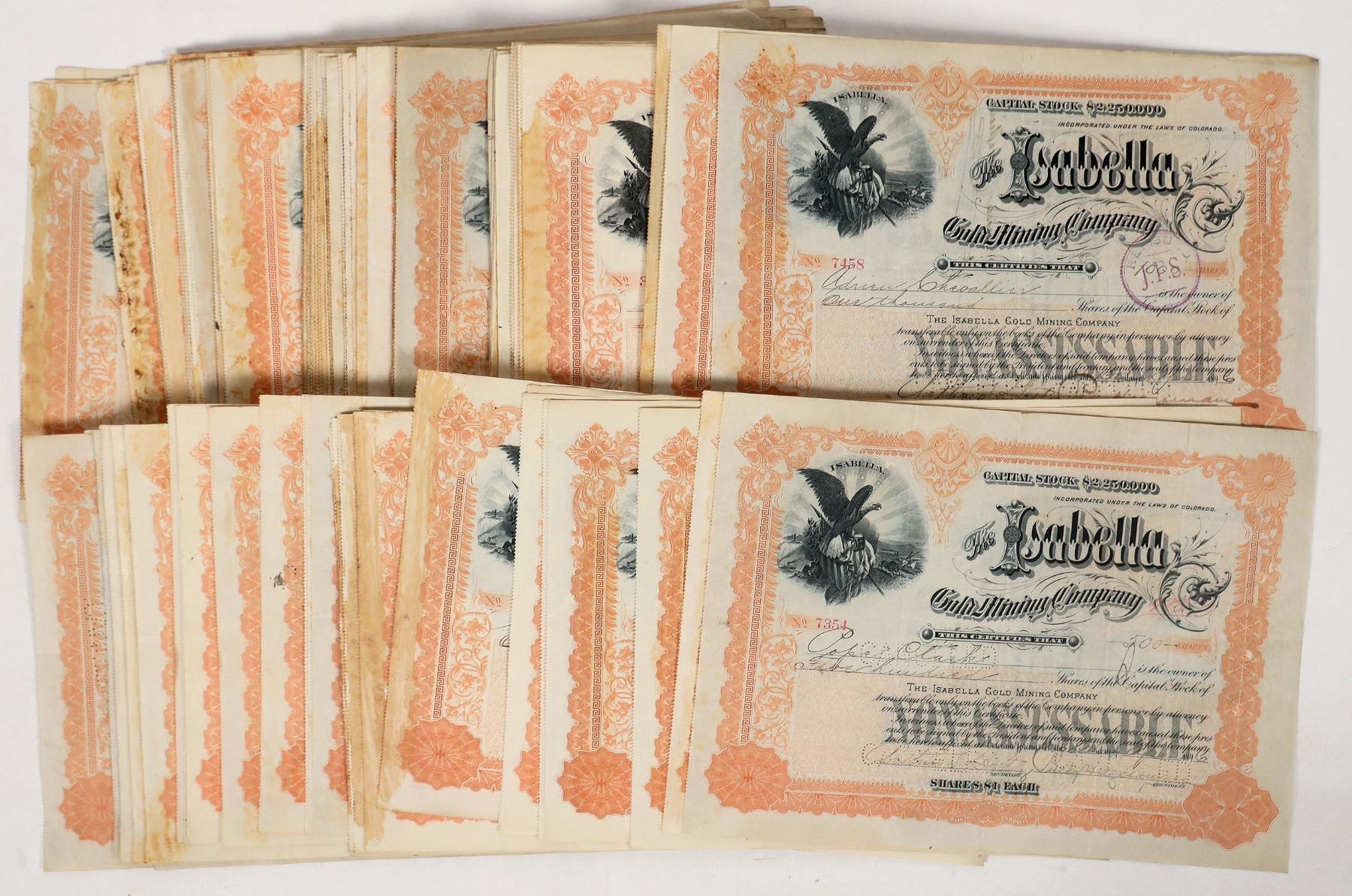 About 200 1895-1896 Isabella Gold Mining stocks with Percy Hagerman signatures.