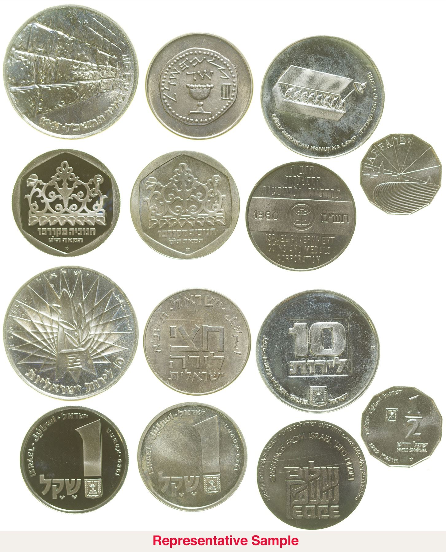 Lot of 141 Israeli coins, 1949-mid-1970s. Including silver crown sized pieces. Worthy of inspection. State: City: HWAC#: 48907 Date: