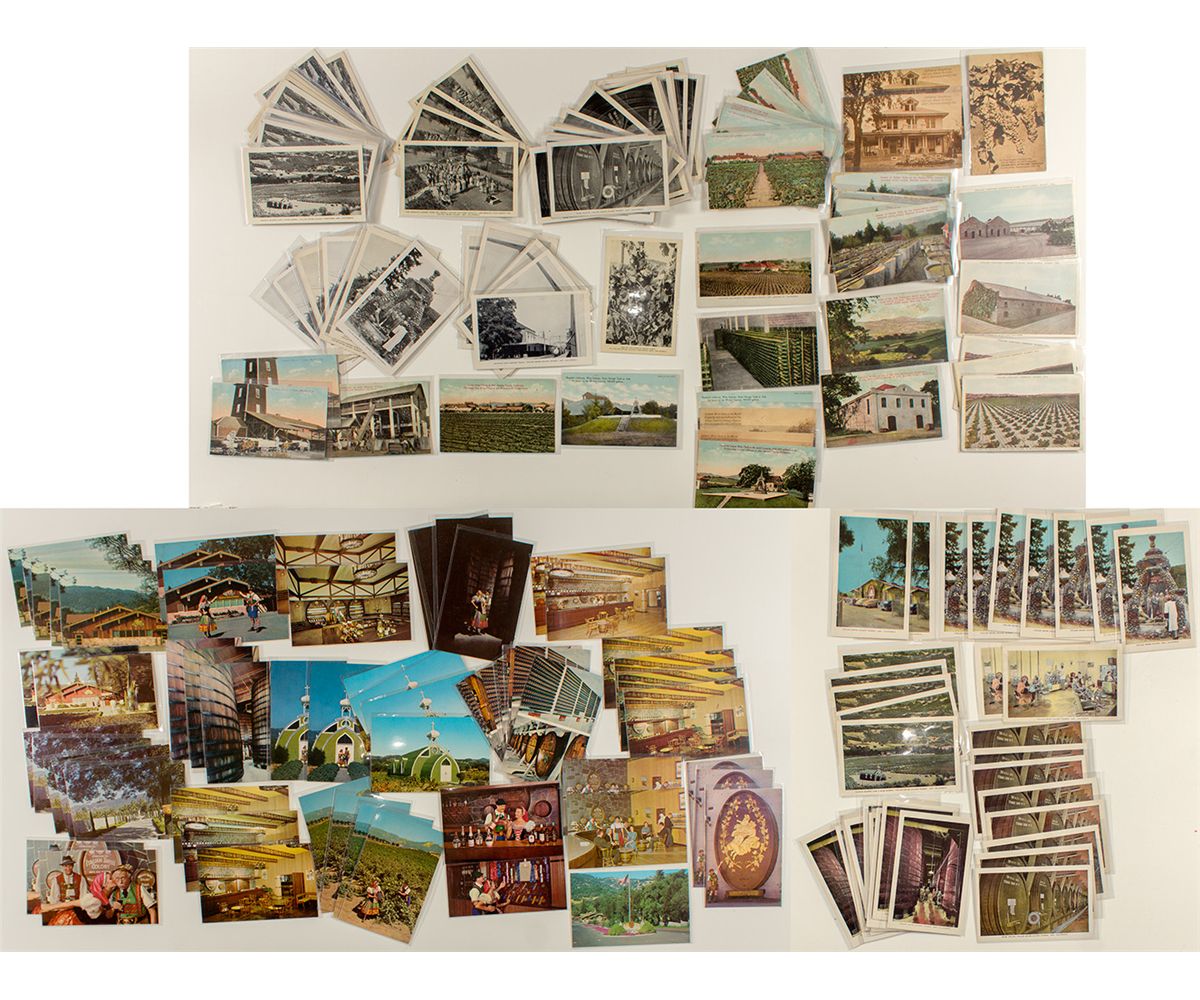 Lot of 184. Huge group with many types of postcards (early, B+W, colorized, chrome) for the Italian Swiss Colony. 1) Twenty-eight early cards depicting many scenes: Cream of Tartar Vats, Concrete Vaults, View of the Asti Vineyard, Wine Cellars, Storage Tank, Officers' Residence, etc. Printers included: Britton & Rey, Mitchell, Pacific Novelty Co. Seven have been mailed. Some duplicates. 2) Fifty-seven Black & White (White Border) (c. 1938-1950), most postally unused. Duplicates 3) Thirty-four colorized (c.1945-1955). Duplicates 4) Sixty chrome (c. 1957-1979). Duplicates. 5) Five So. California (Guasti) colorized cards: triplicate of vineyard view; two different views of the company plant. Please see photos for more details about this large lot. Look for other Italian Swiss Colony lots. Fantastic collection for this important part of California wine history!City: County: State: CADate: