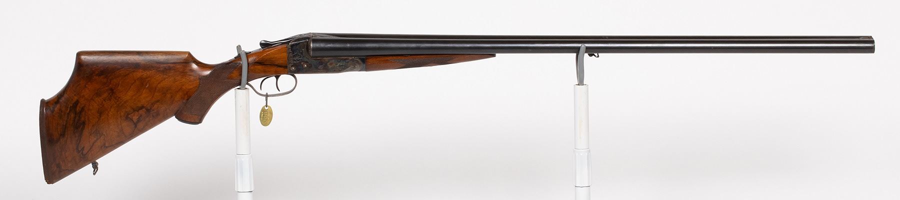 Ithaca Gun Co, SxS, 16 GA, 4x wood, target stock, fleur-de-lis checkering, engraved duck panel scenes, lanyards, 32" barrels. SN: 312173, JMD Oval Tag: 10451, Condition: Excellent, >> FFL IS REQUIRED <<