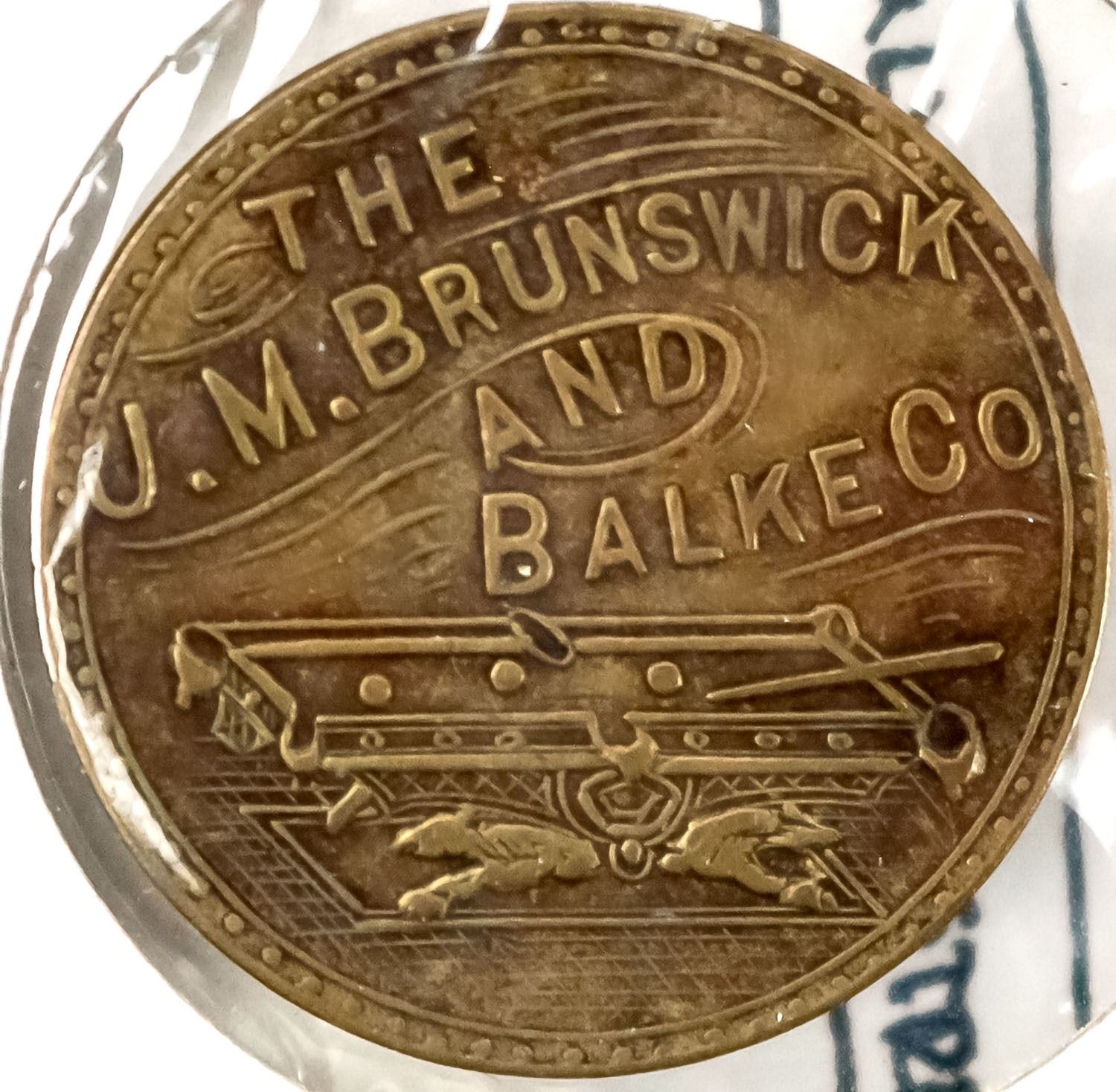 Circa 1880s, listed in 1886 Bradstreet directory as Joseph Gardner Saloon. GOOD FOR / 5c / J. S. / GARDNER / IN / TRADE // The / J. M. Brunswick / And / Balke Co. / pictorial pool table; Rd., br., 24, R -7 in Al Erickson's "Washington State Trade Tokens."