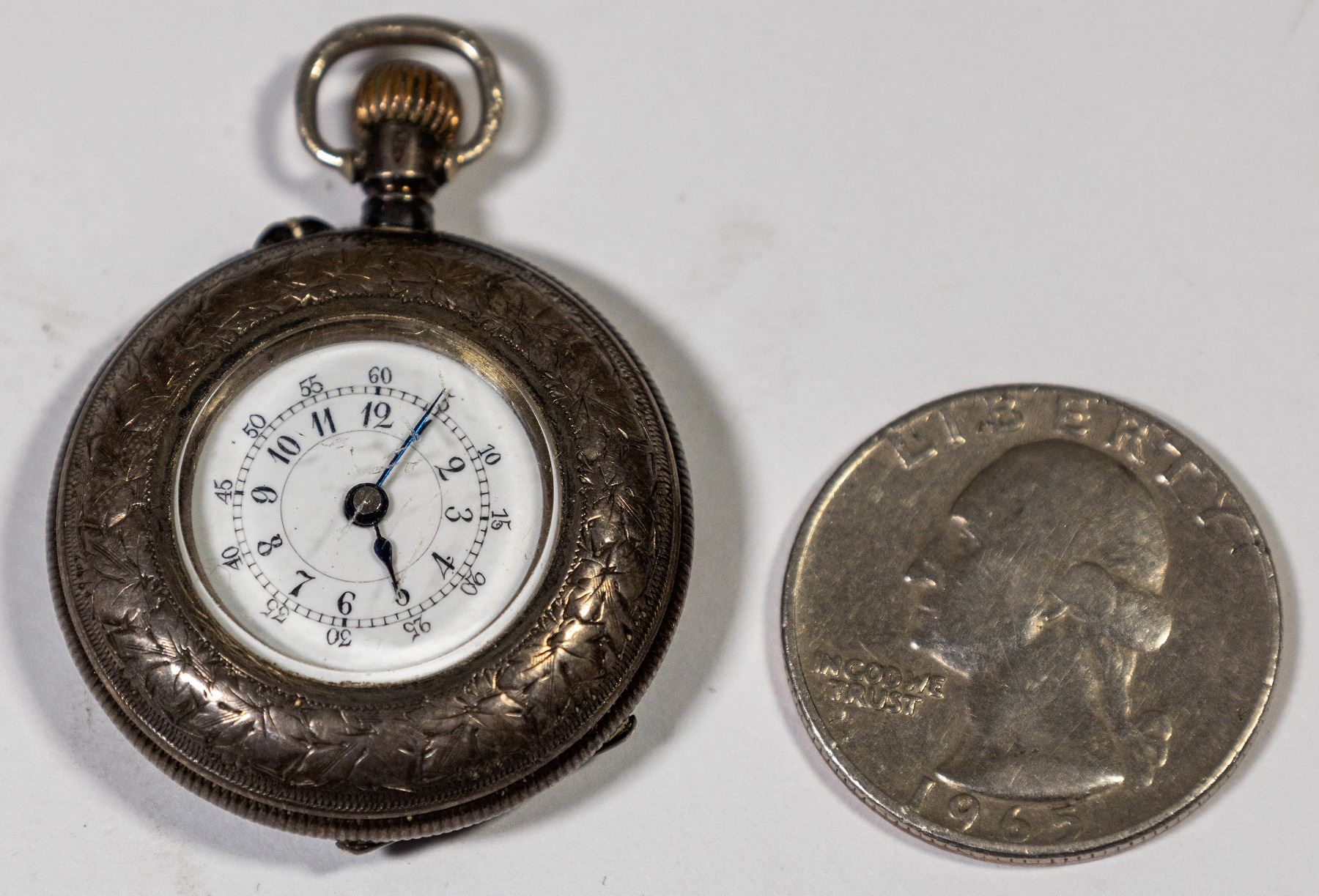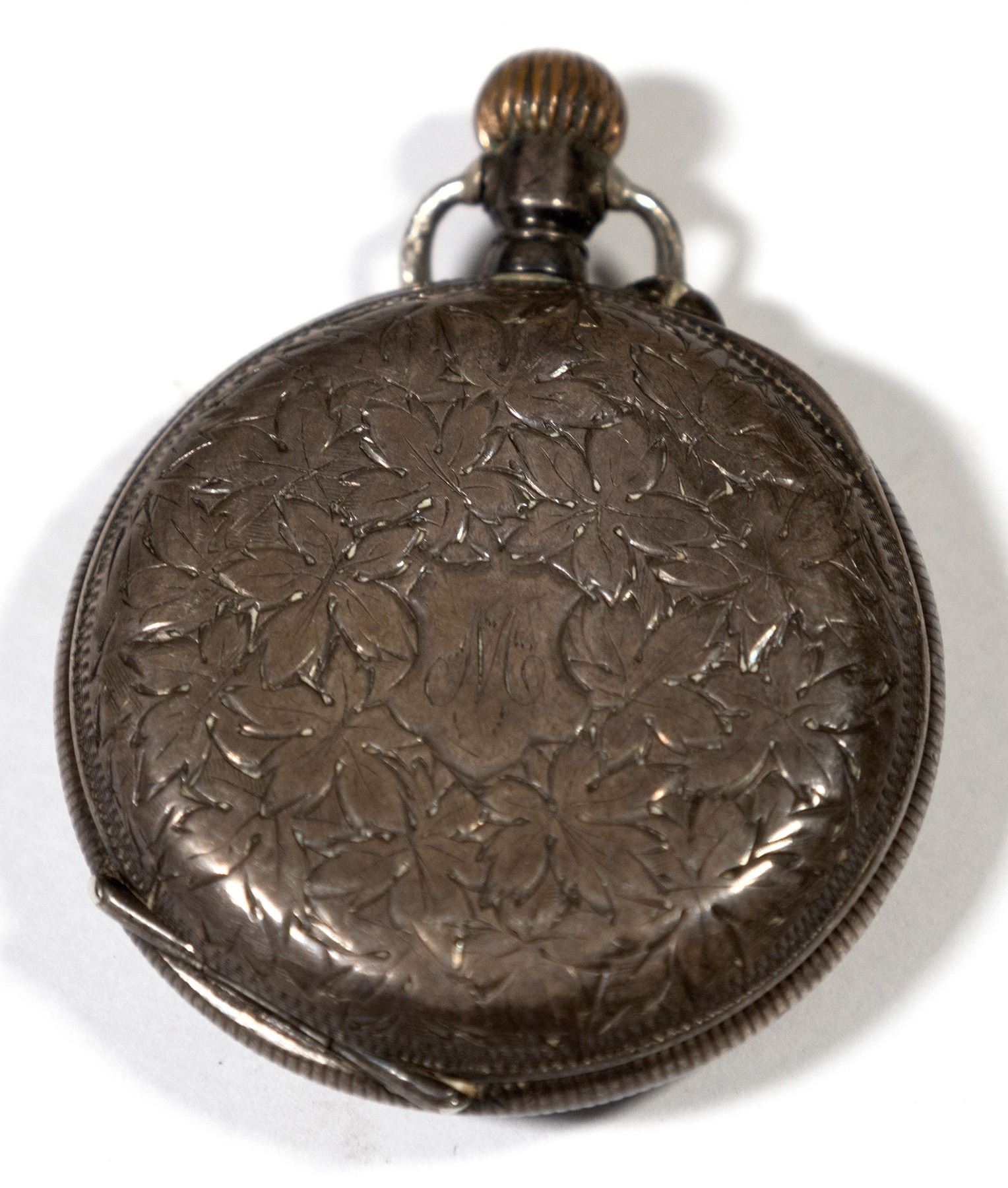 Antique Rare JG (Julien Gallet) Lady Racine Pocket Watch 0.935 Silver pocket watch case. engraved inside case "Kate". Non working, 386848. Beautifully engraved silver case, tarnished. Watch face 5/8", watch diameter .75" State: City: Date: Provenance: