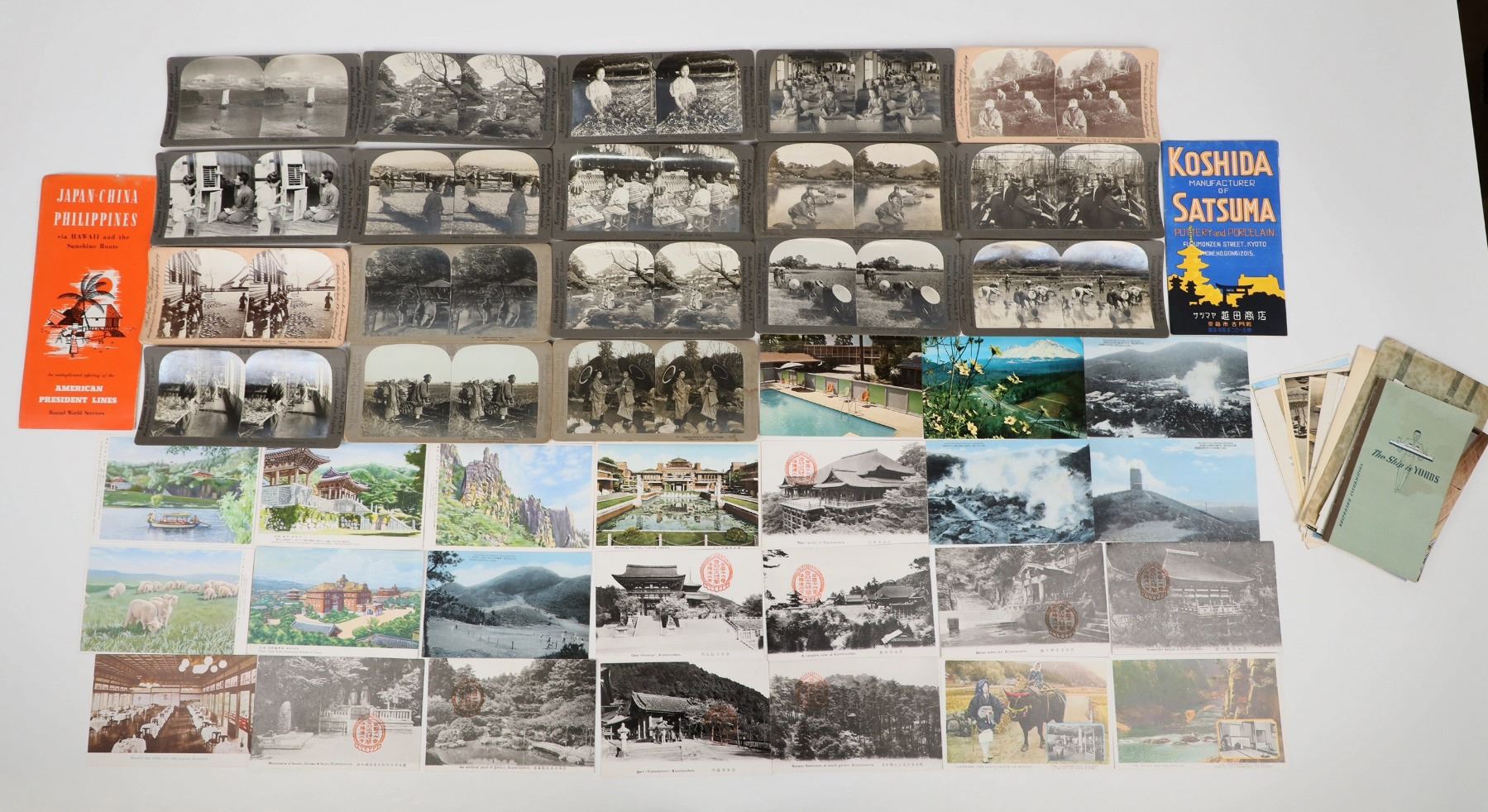 45 plus items. Post cars/photos/ brochures of lakes, gardens, mountains, artist conception drawings. Seventeen stereopticon slides. : parks, schools, gardens, factories. All in very good condition.