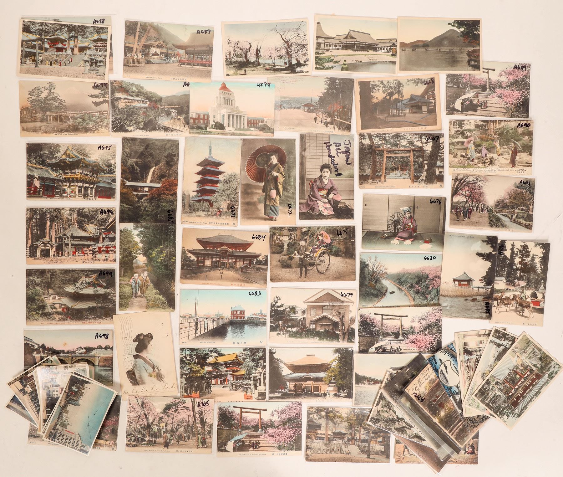 A collection of 55+ vintage postcards from Japan. Hand colored. Please see photo(s) for more details. [Japan]