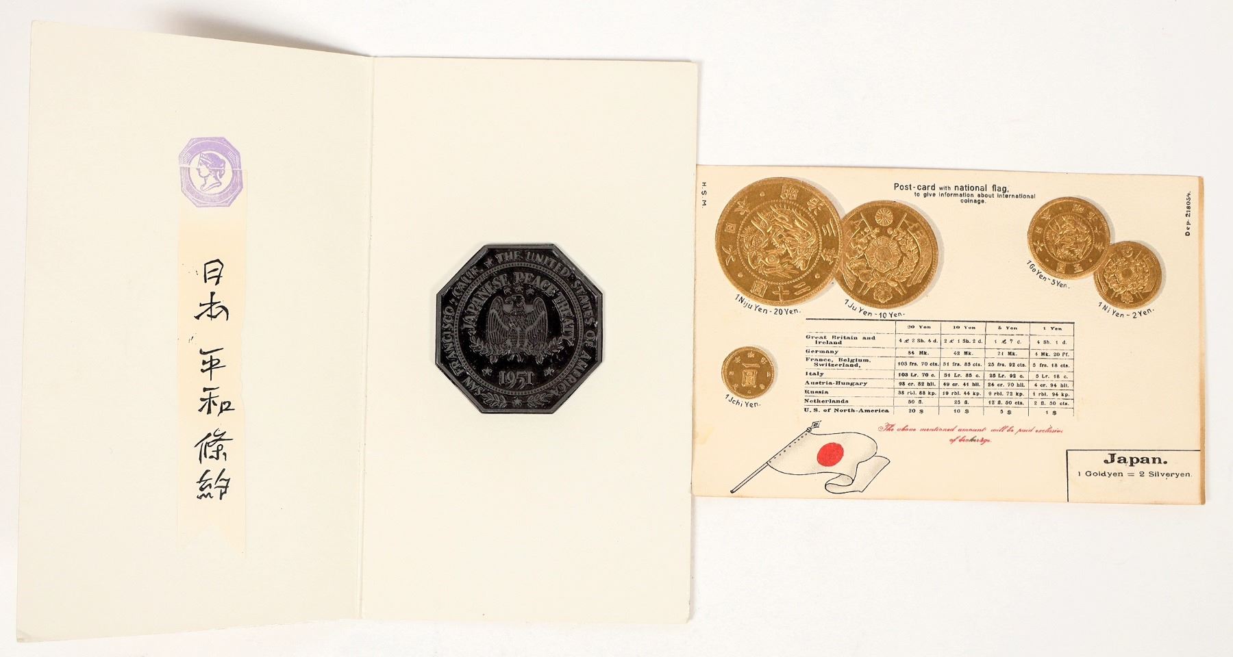 Also a post card with exchange rates of Japanese gold and silver yen.