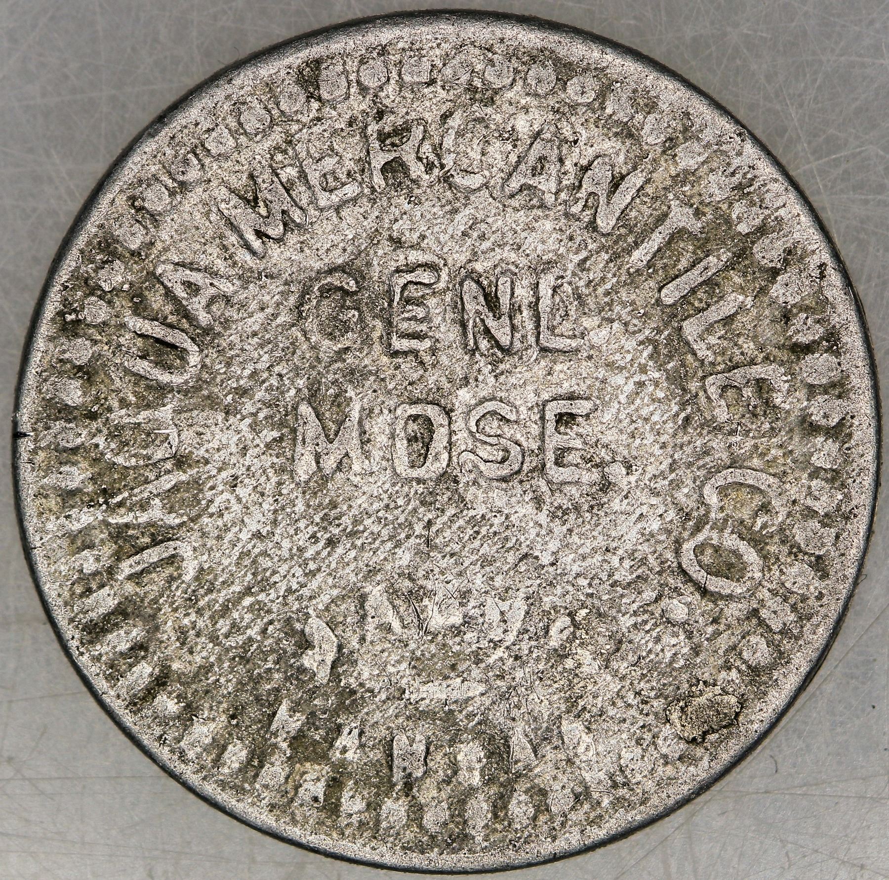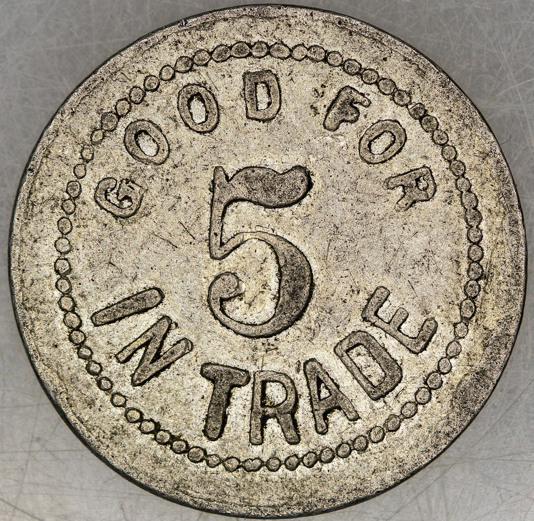 JAQUA MERCANTILE CO. / GENL. / MDSE. / JAQUA. / KANSAS // GOOD FOR / 5 / IN TRADE; Al., rd., 21 mm.