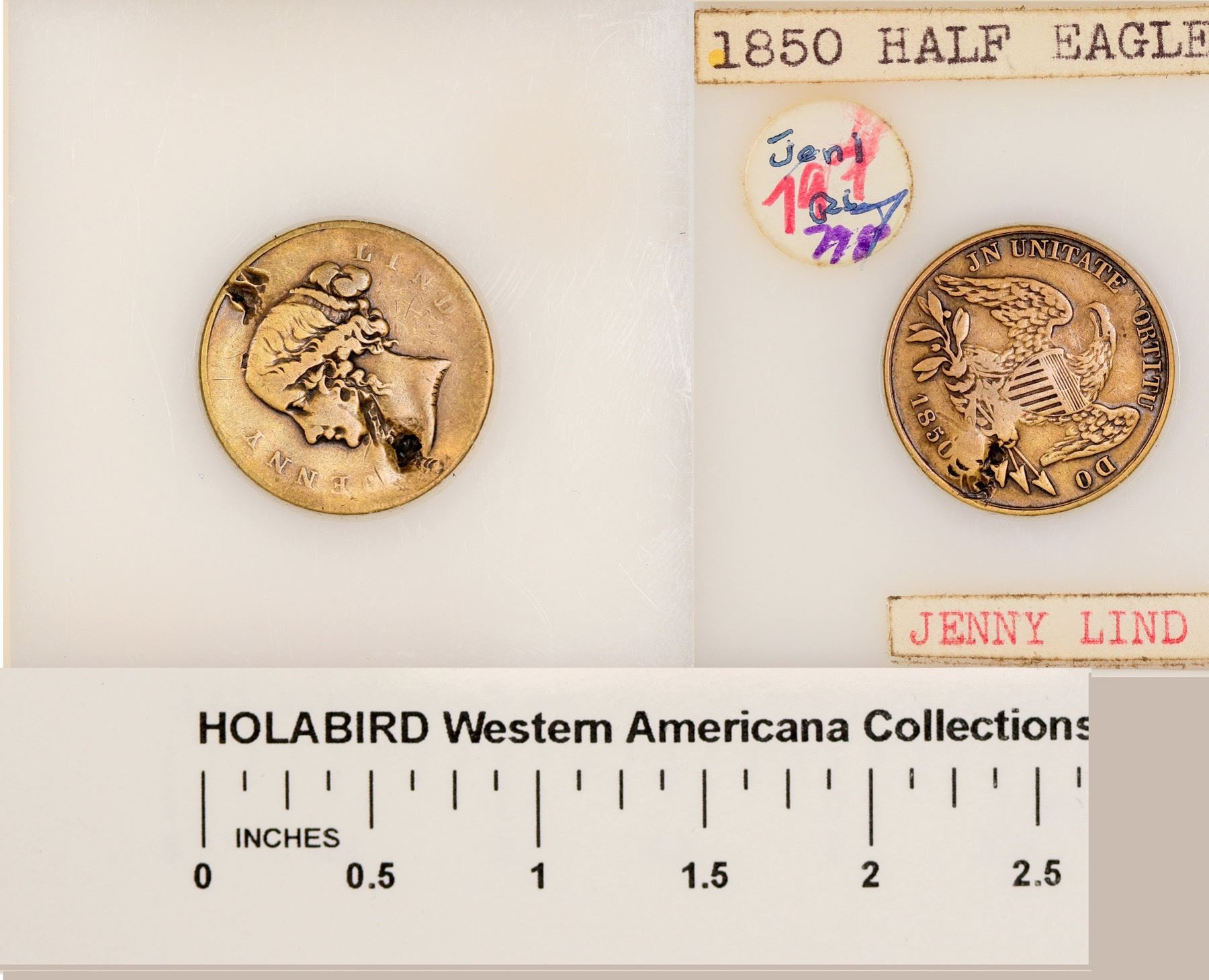 1850 half eagle sized Jenny Lind counter. Br., rd., 22 mm. Rare, not in Fauver.