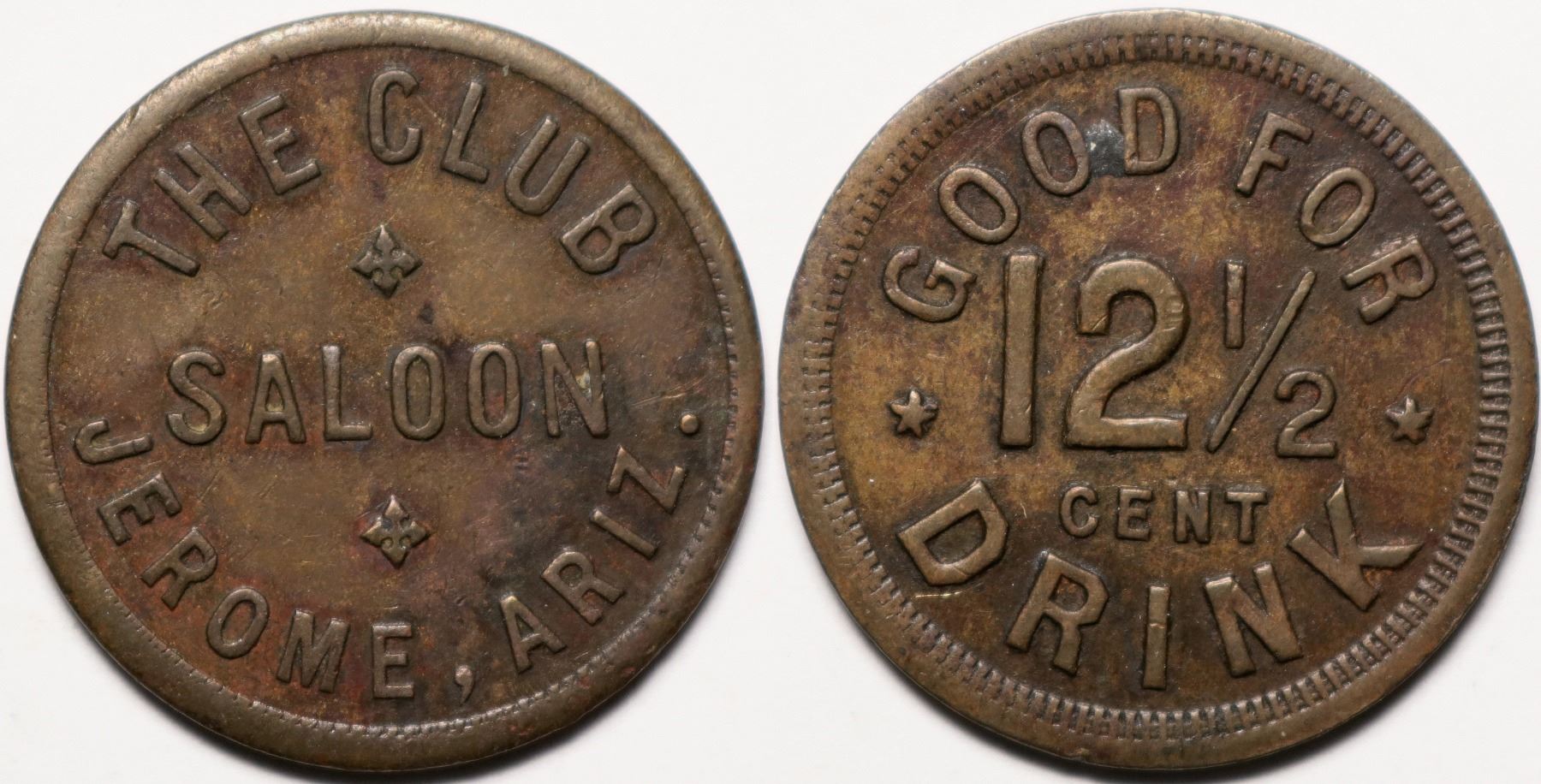 The Club / Saloon / Jerome, Ariz. // GF / 12 1/2 / Cent / Drink. Round, Br, 10mm.