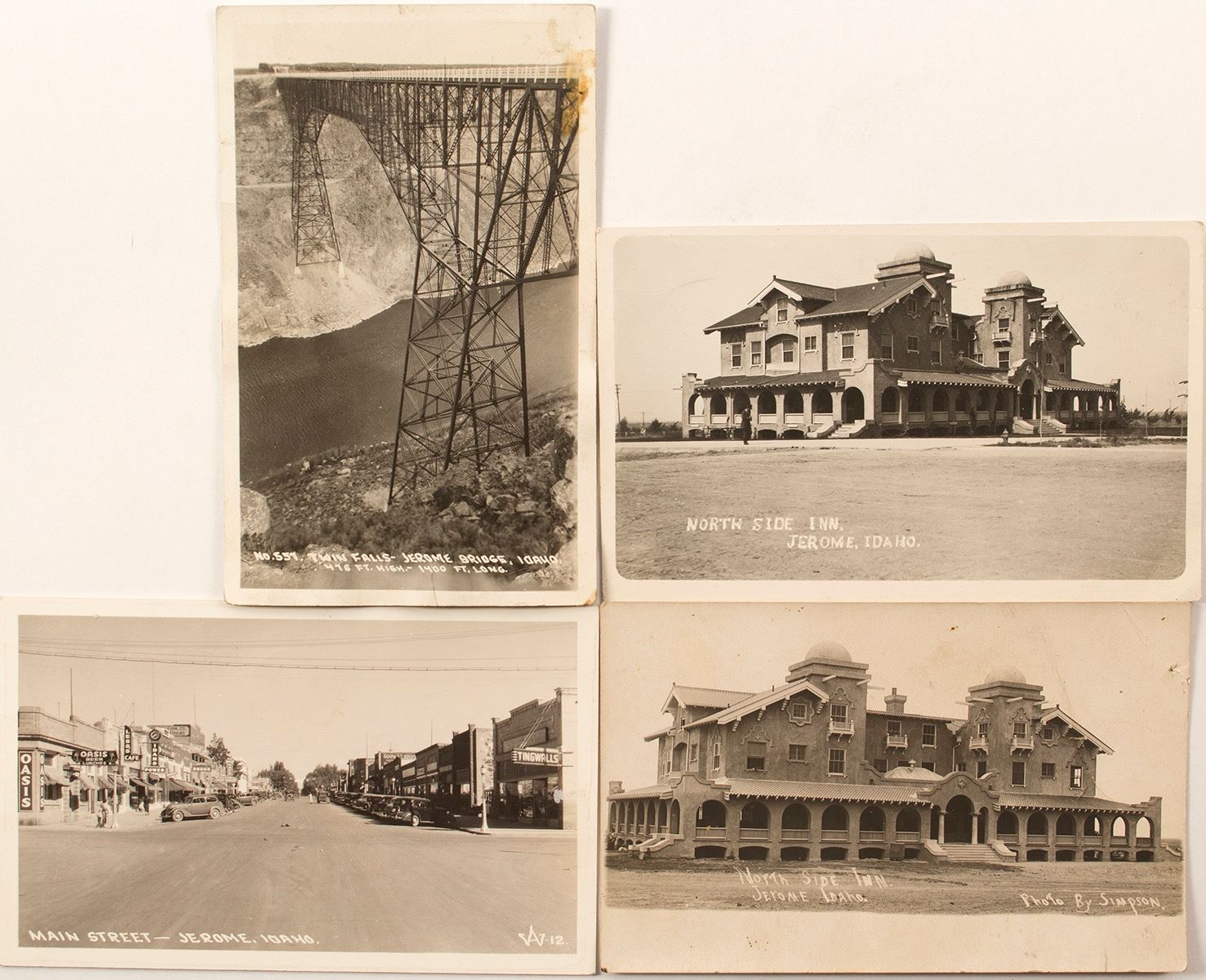 Two Northside Inns. One photo taken by Simpson. Twin Falls to Jerome Bridge, Number 'W12.'. Main Street. Date: 1929-1943 Location: Jerome, Idaho HWAC# 54523