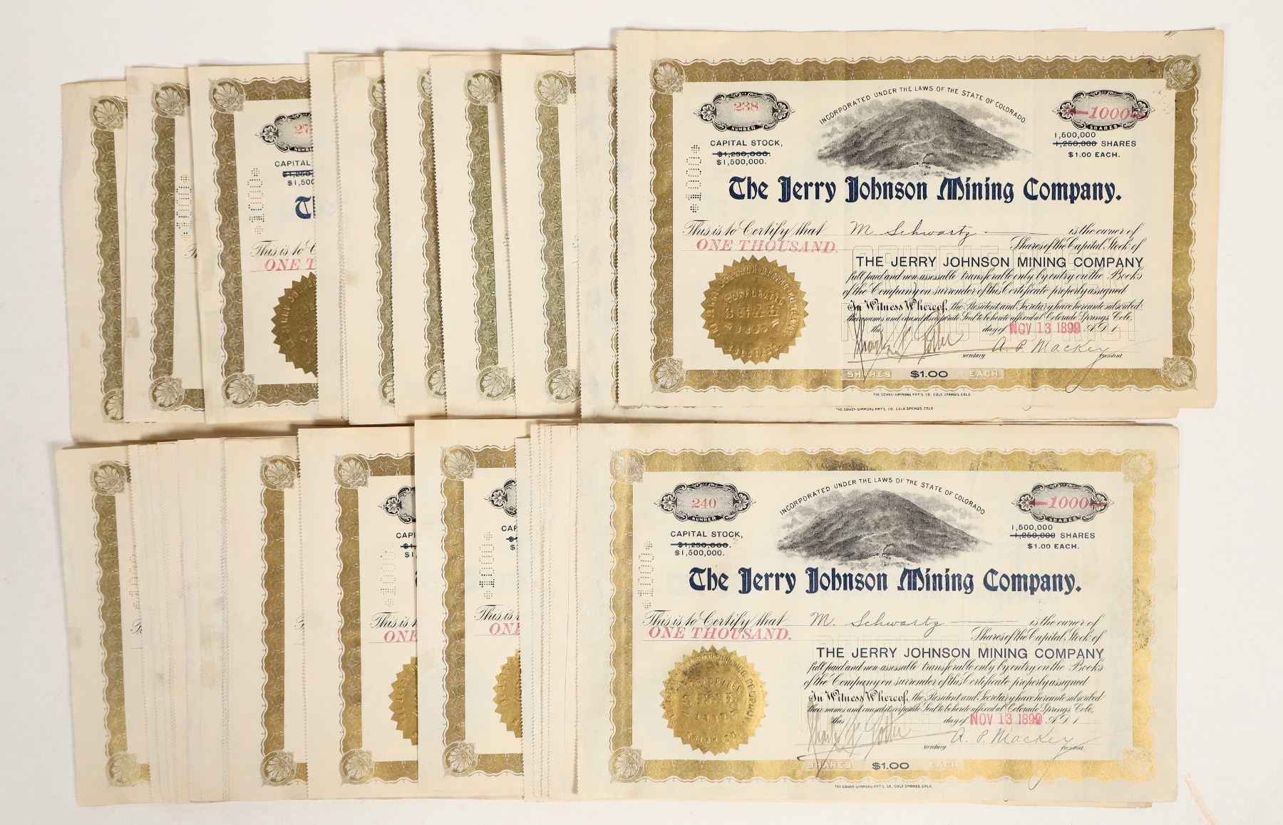 JJ MC stocks issued in 1899. 1,000 shares per certificate, approximately 20 certificates. Appealing gilded decorative borders. See photo.