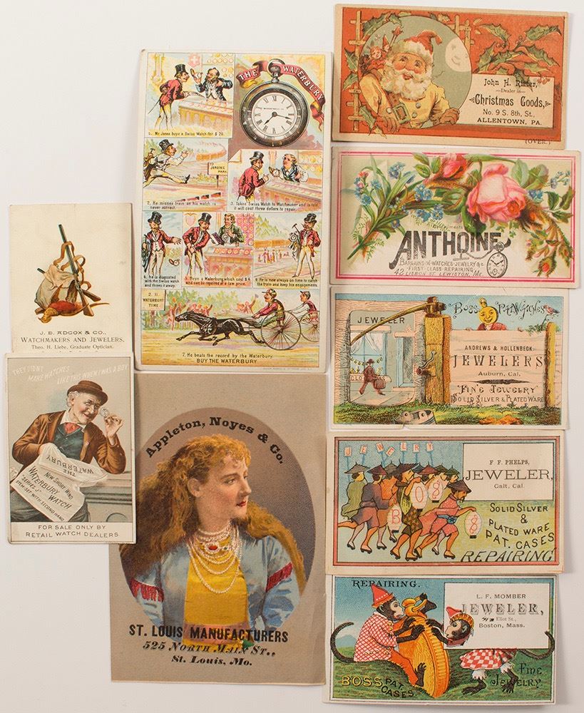 9 jewelry related trade cards. Date: c. 1880-1890 Location: HWAC # 54125