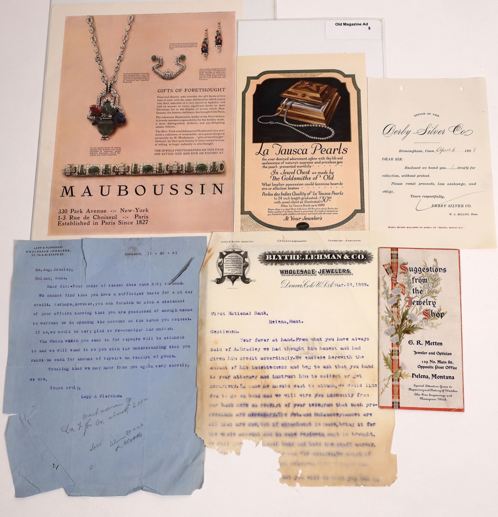 Vintage ads-pearls, necklace. Derby Silver letter. GR Metten jewelry guide. 2 letter heads 1885 and 1888.