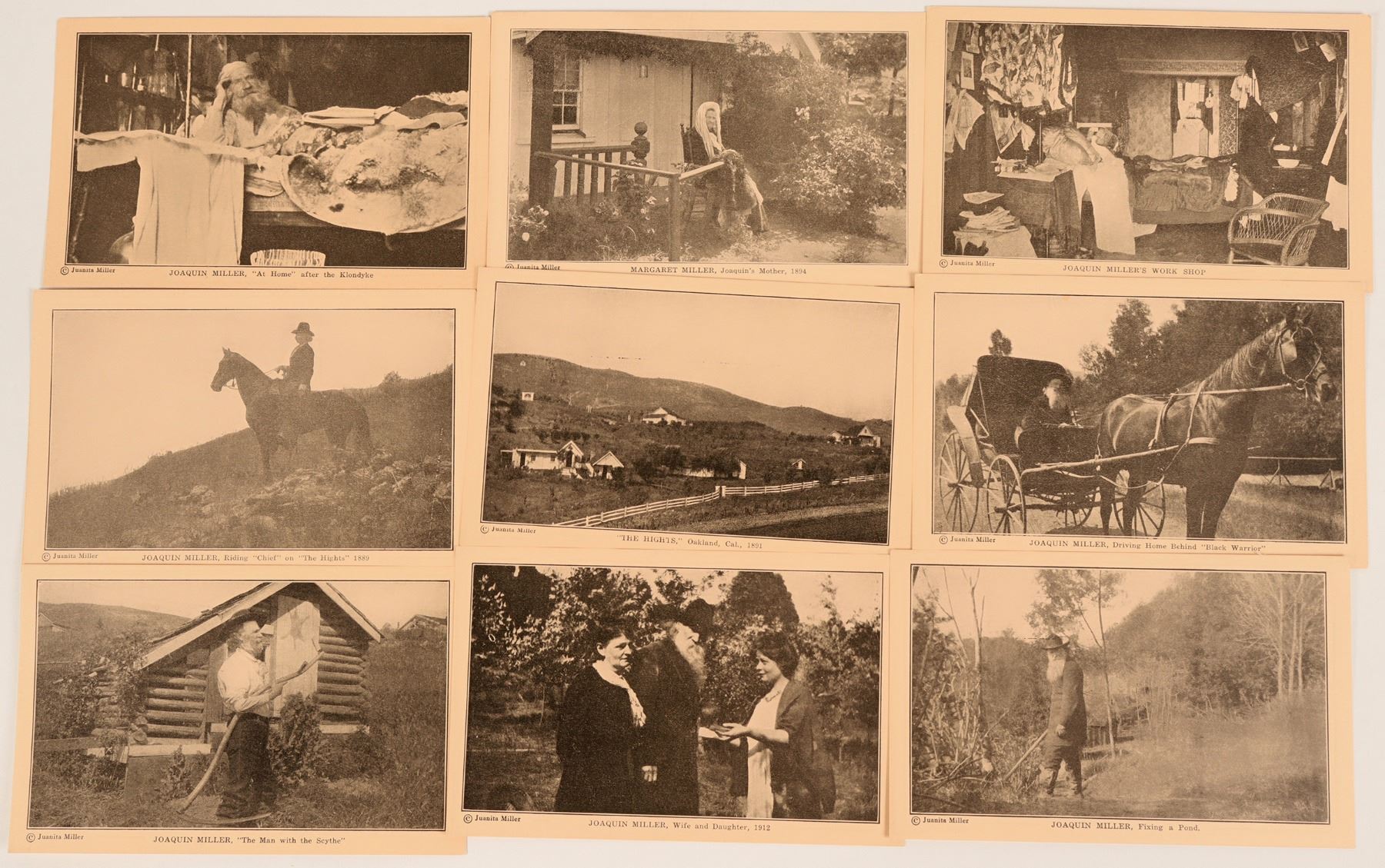 Joaquin Miller RPC's showing he and his family's Oakland, California home. Besides candid shots of Miller, there are also shots of his wife and daughter. All are in good condition. See photos for more detail and condition.
