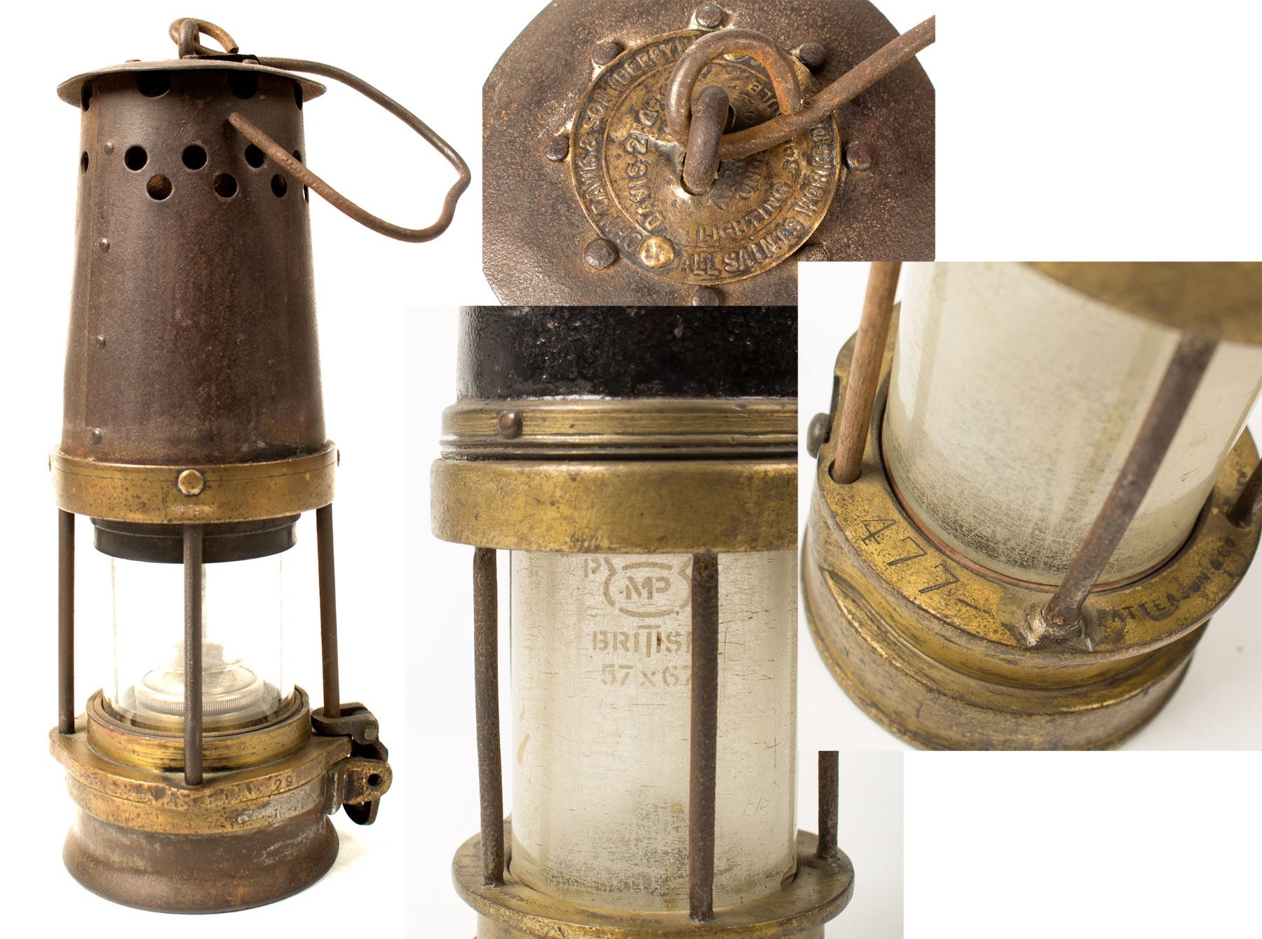 Bonnet clanny style. Made by John Davis and Son in Derby in the late 19th century. The lamp has an identification brass tag on top as well as the name punched into the base. Heavy duty construction. 10 inches tall, 3 1/2 inch diameter. State: City: HWAC#: 47140 Date: