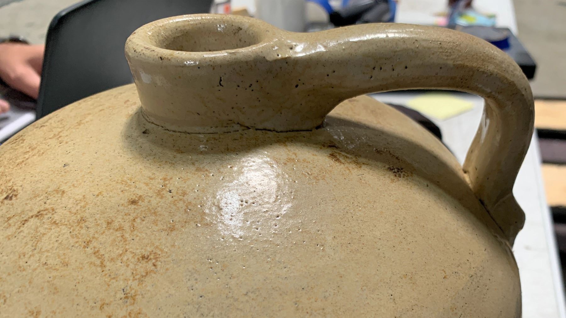 Preble J-60. Pre-fire crack at handle and top junction. 11.5" tall, 9" diameter.