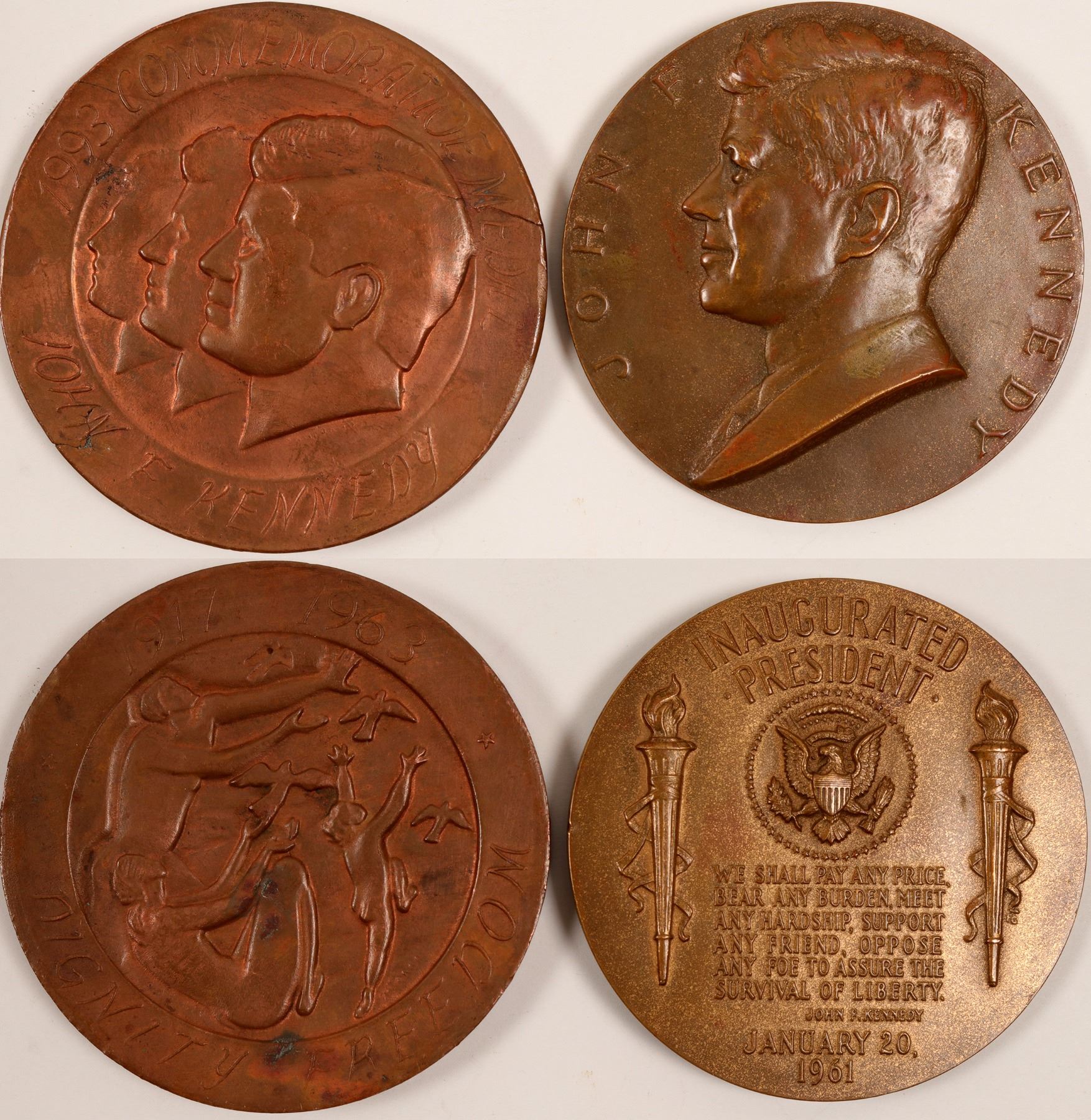 Two J F K Medals, Inauguration Jan.20, 1961, and Dignity & Freedom 1963 Commemorative
