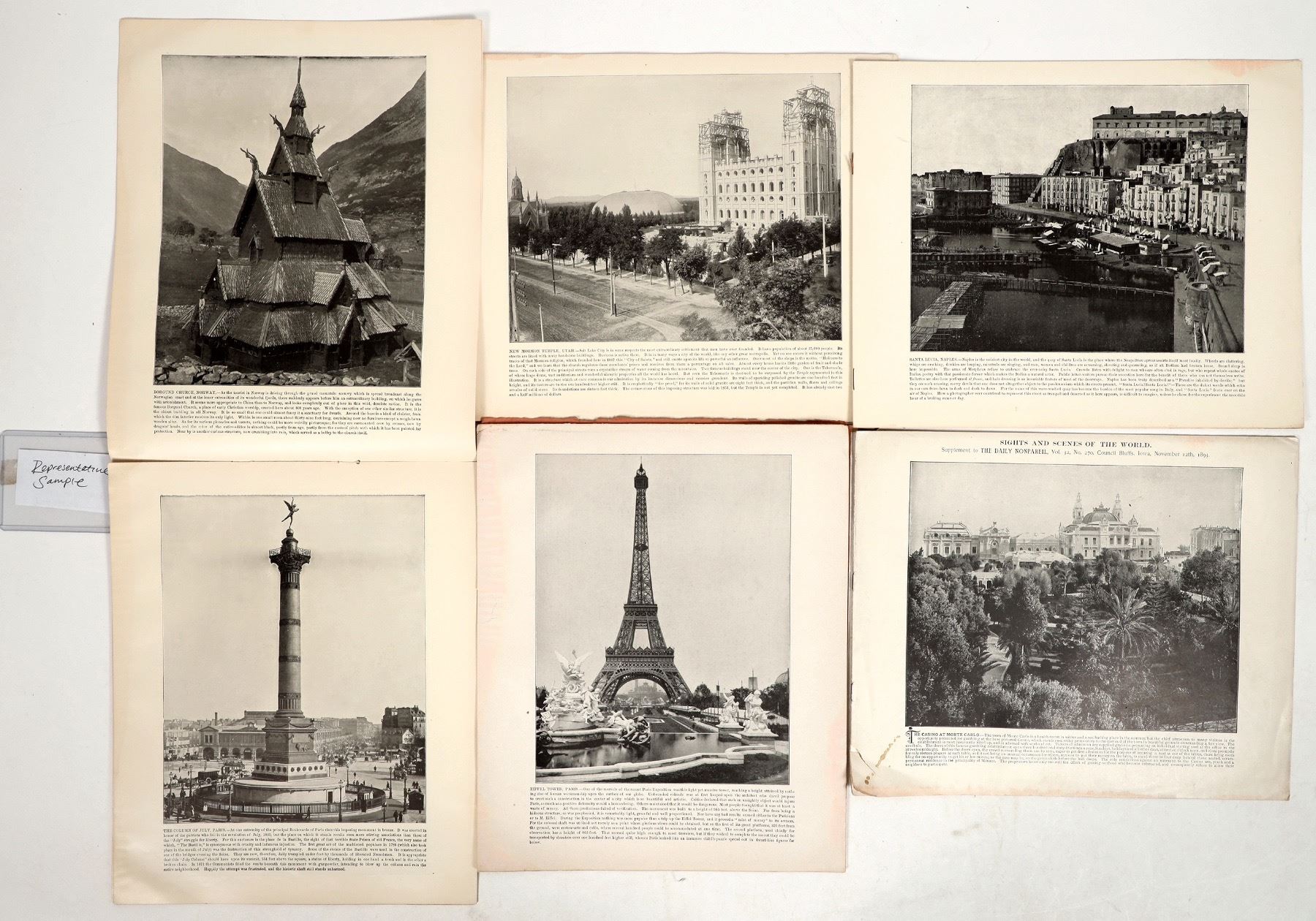 About twelve volumes of John L. Stoddard's Portfolio of Photographs of famous cities, scenes and paintings. Part of the Household Educational Series of 1893, published weekly with a subscription price of $25 per year. Photos are 8 x 10 inches, bound is soft cover brochures of about 16 each. Covers have become detached, but pictures are in fine condition. John Lawson Stoddard (1850-1931) was an American lecturer, author and photographer who pioneered the use of the stereopticon (magic lantern), adding photographs to his lectures about his travels. In addition to his wildly popular lectures, he published books: "Red-Letter Days Abroad: (1884) "Glimpses of the World," (1892) and this Portfolio of Photographs which was issued in sixteen weekly installments.