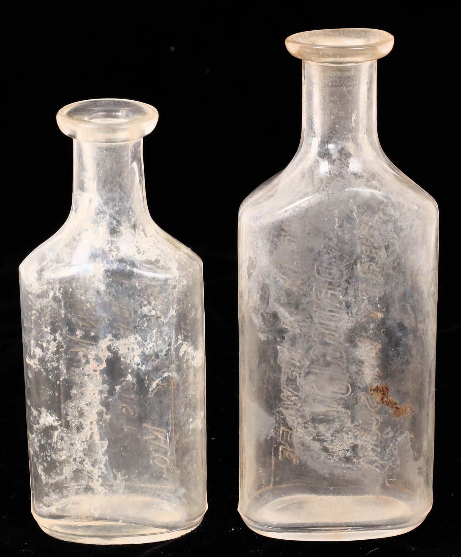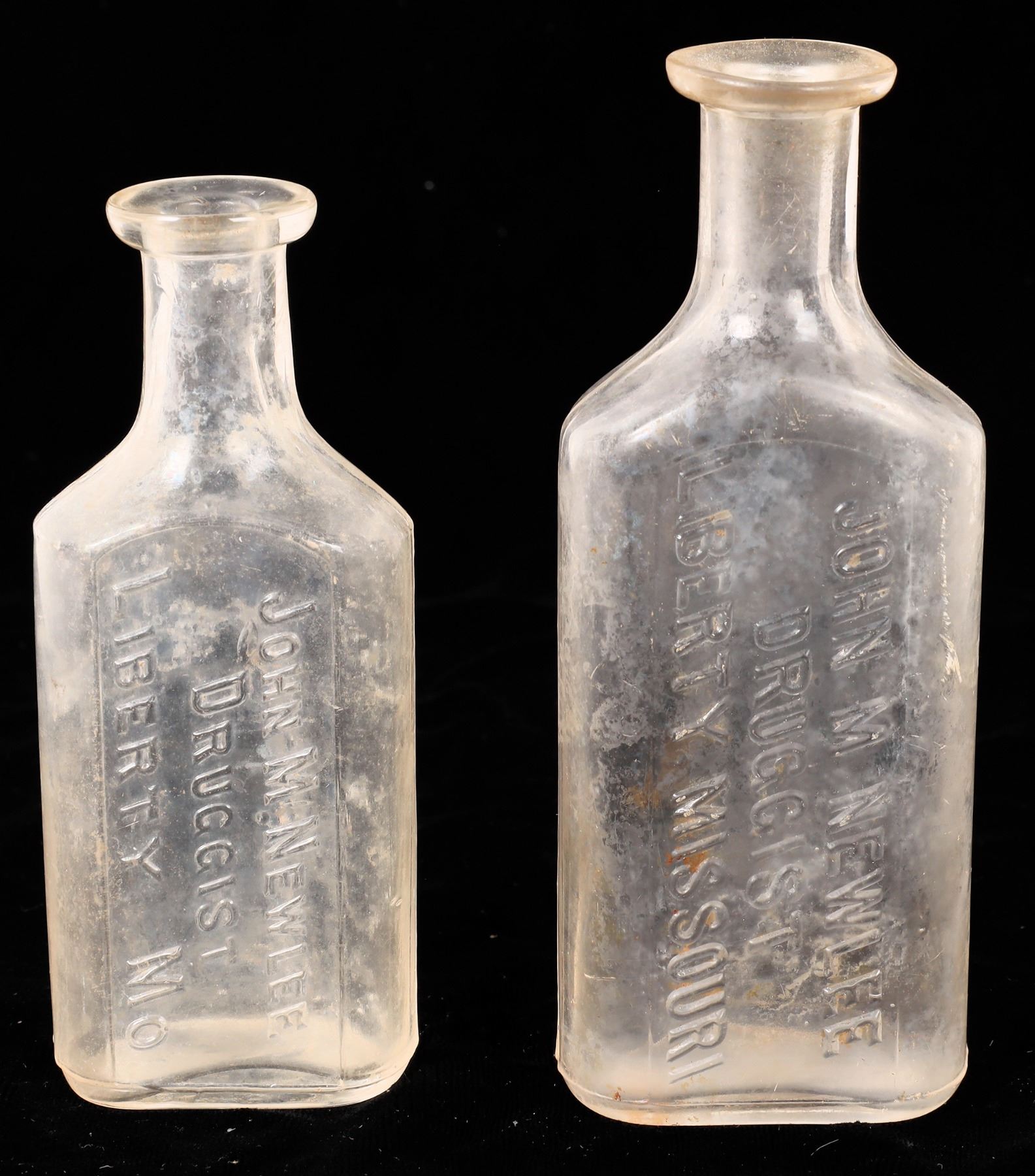 2 Clear embossed John M Newlee/druggist/Liberty, Mo. bottles. 4.5 and 5.25". No apparent chips or cracks. Missouri Liberty Gary Bracken Collection