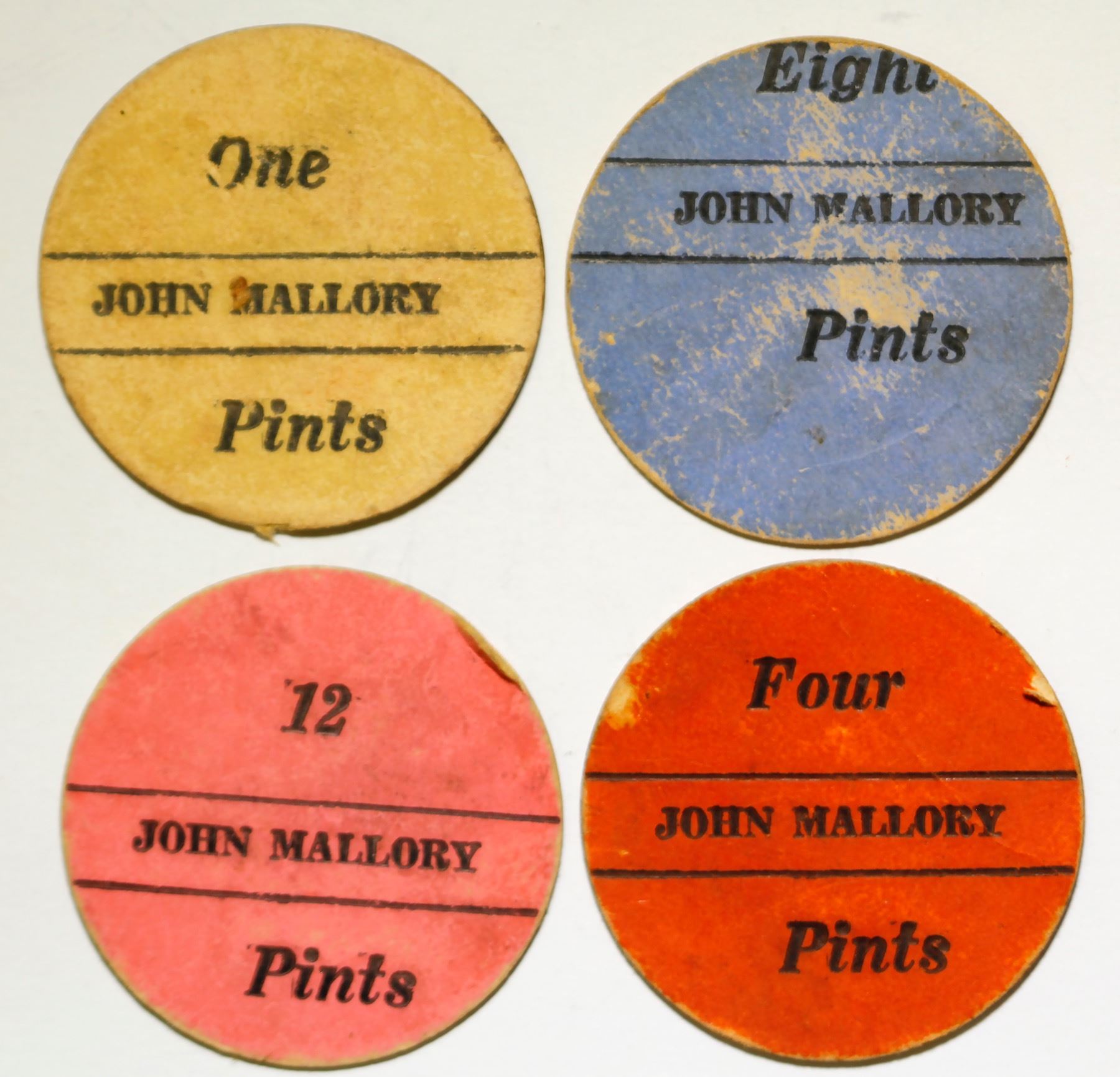 Lot of four: GF one, four, eight or 12 pints. One sided cardboard tokens. State: Texas City: Lindale Date: HWAC# 81461