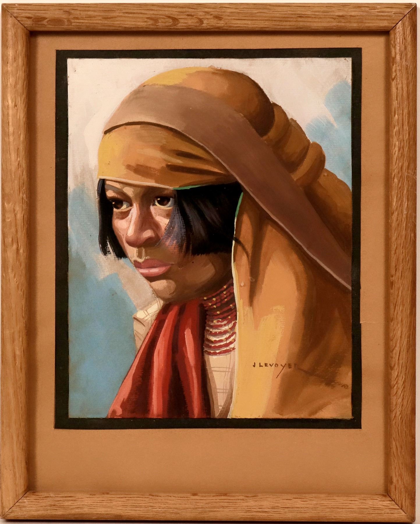 Sensitive portrait of a woman by early 20th century Ecuadorian artist Jorge Levoyer. Oil on board, 11" x 8.5", Framed 15" x 12". Leboyer captures the features of this old woman. See photo for more detail. Artist signed in lower right-hand corner.