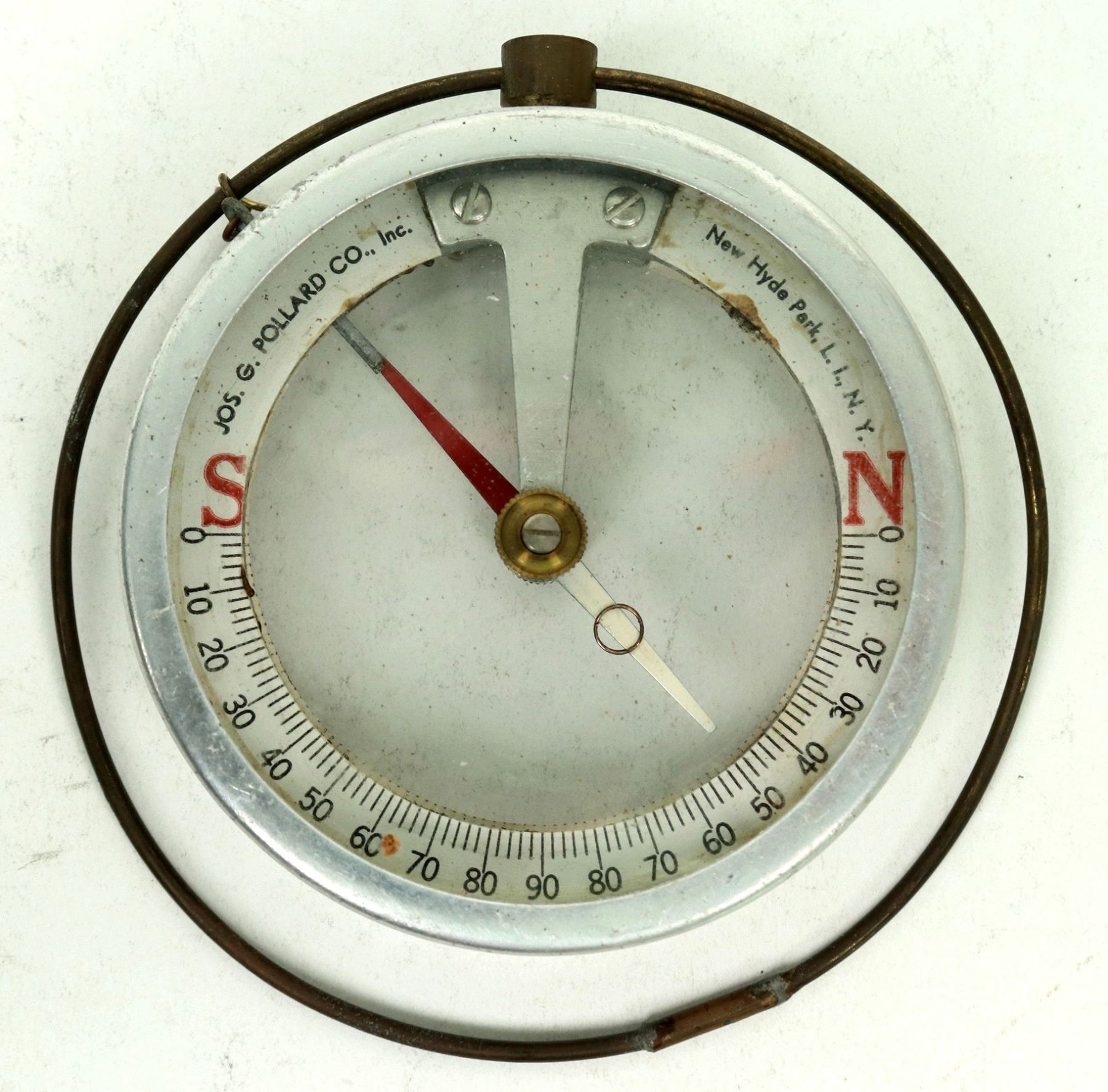 This is a Jos. Pollard dip compass used in the mining industry. At 3.5 in. in diameter with carry case. In good condition. Please see photo for details.