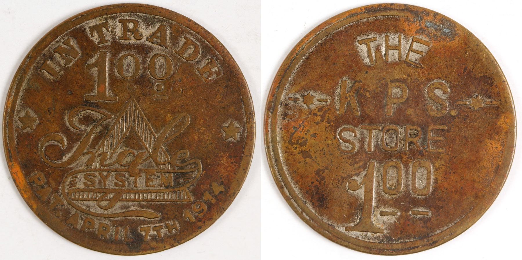 K.P. S. Store 1.00 INGLE token. WM/R/35mm Date: Location: Edna, Texas HWAC# 62659