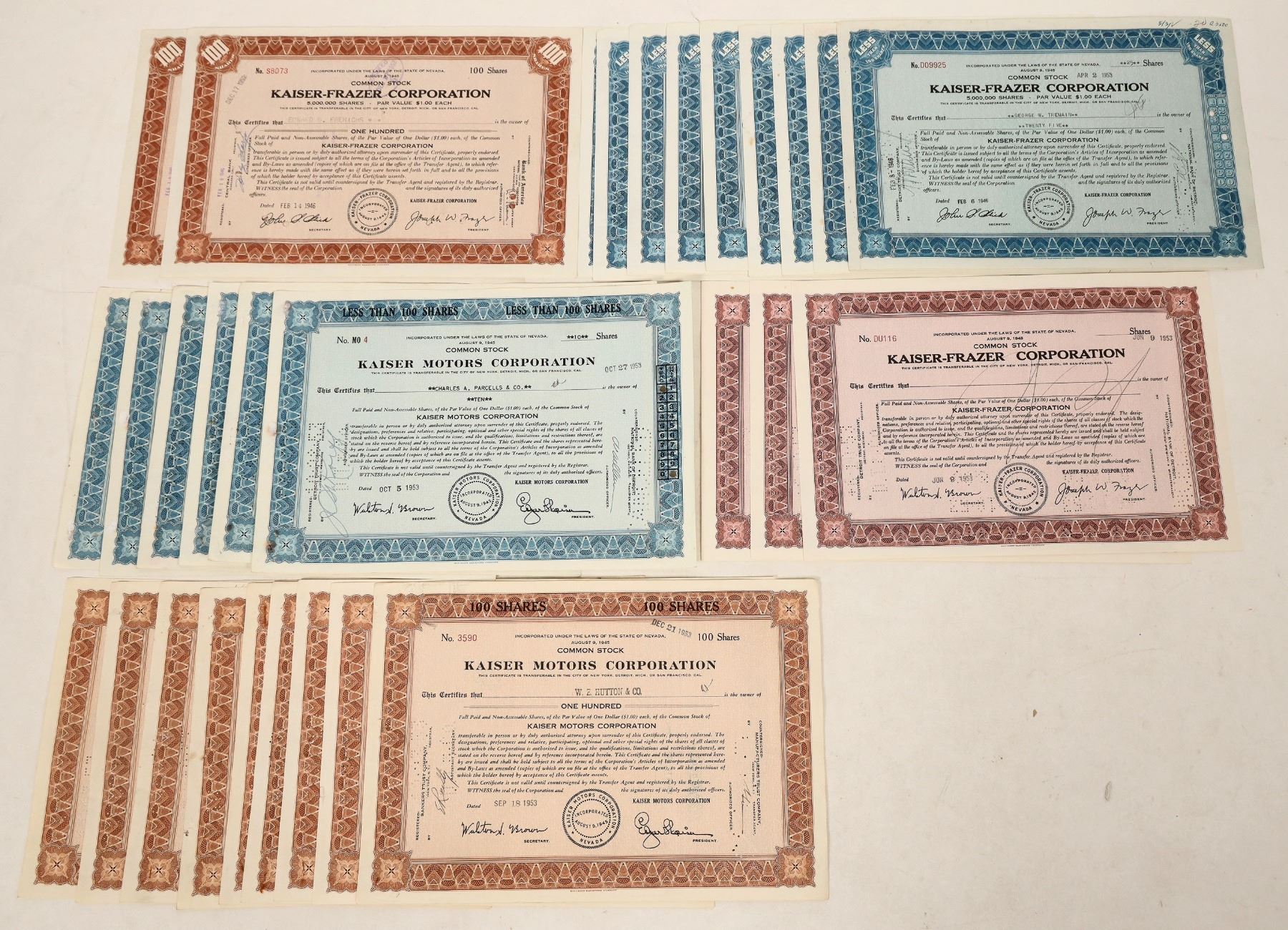 Kaiser-8 brown 1953, 6 blue 1953. Kaiser-Frazer- 3 mauve 1953, 3 brown 1946-53, 9 blue 1946-53.