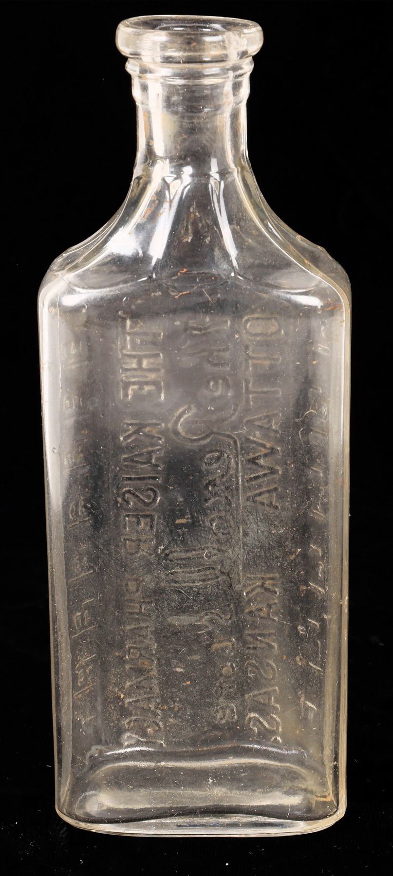 Black embossed The Kaiser Pharmacy/Ottawa, Kansas. 6.5". No apparent chips or cracks.