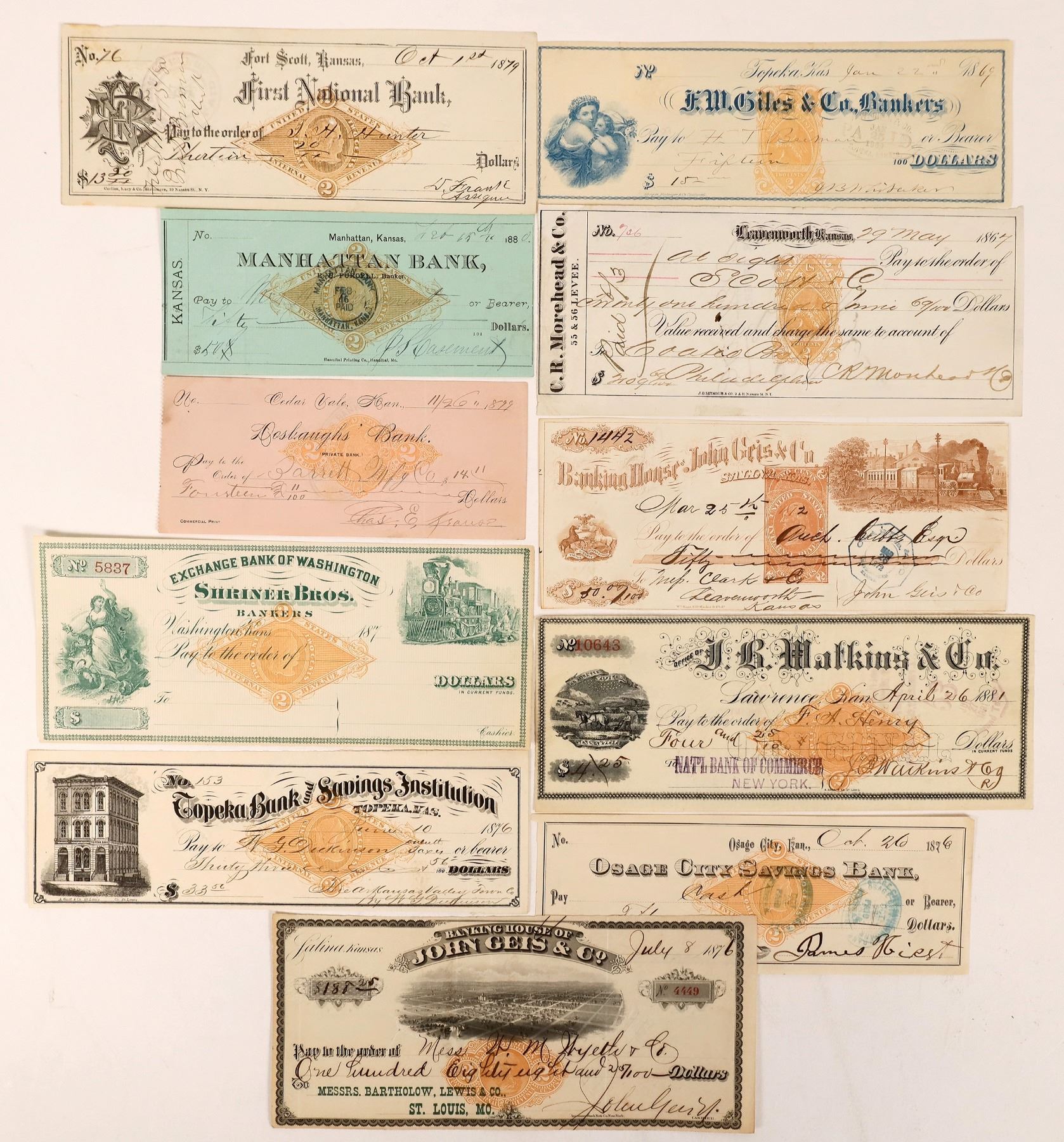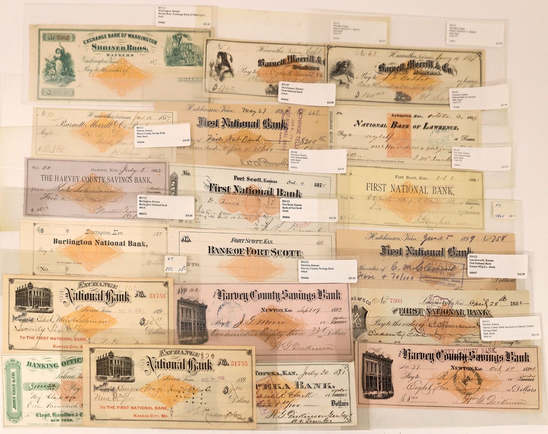 Lot of 29. They come from Leavenworth, Osage, Osborne, Salina, Washington, Topeka, Newton, Hutchinson, Fort Scott, Burlington, Cedar Vale, Manhattan, Lawrence, Hiawatha, Some Dups! See photo for a selection of them.