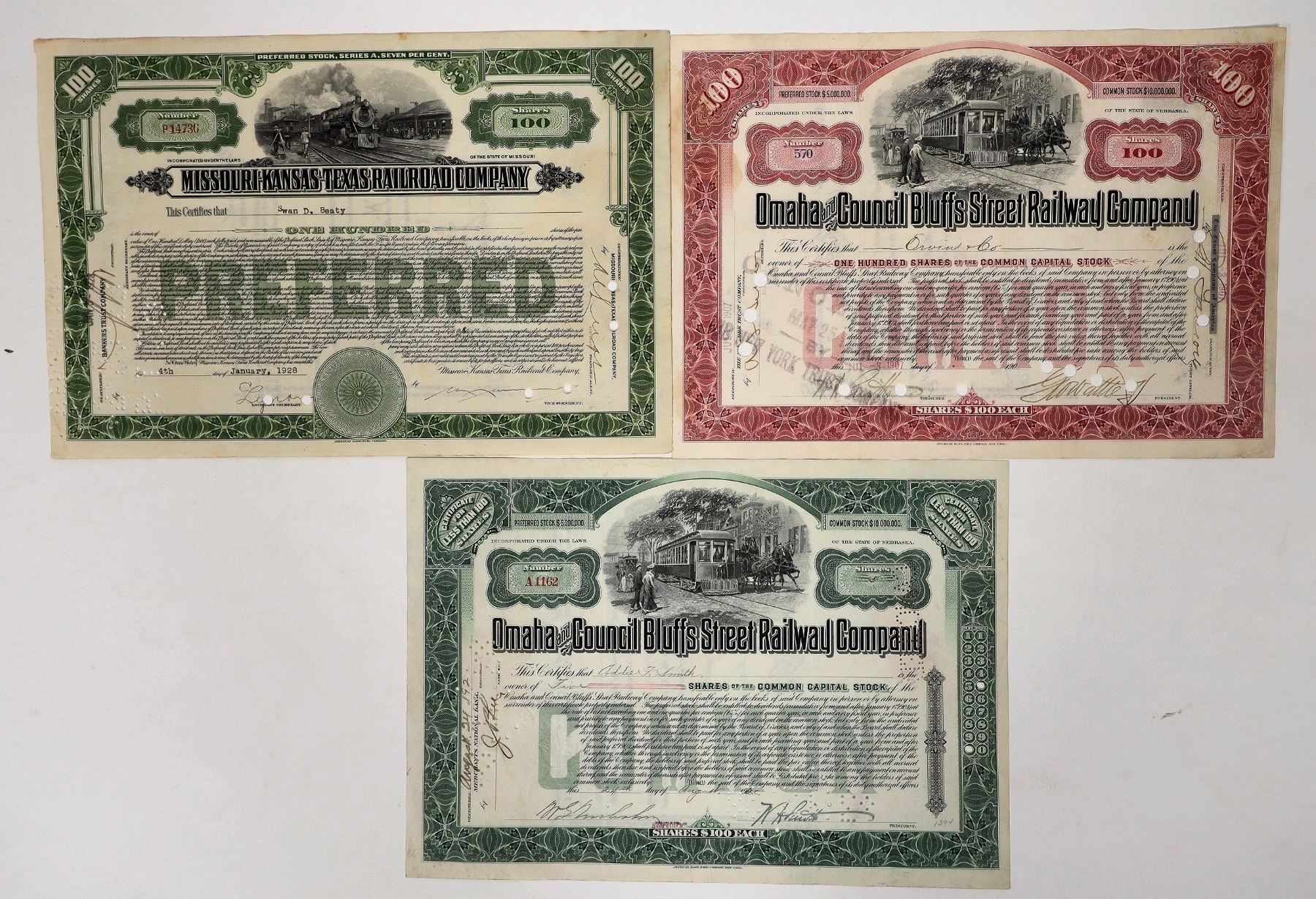 Kansas and Nebraska RR Stock Trio, 1907-28 [192610]