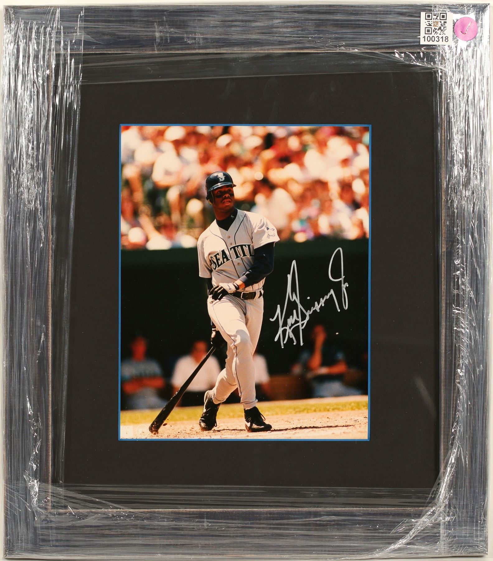 Stellar 8 x 10 photo of 13x All-Star, AL MVP 4x Home Run Leader Ken Griffey Jr. after what looks to be a home run! Autograph in white on lower right of photo. Comes with beautiful black frame;17 x 1 x 15. JSA Authentication included; Certification Number: AA43396.