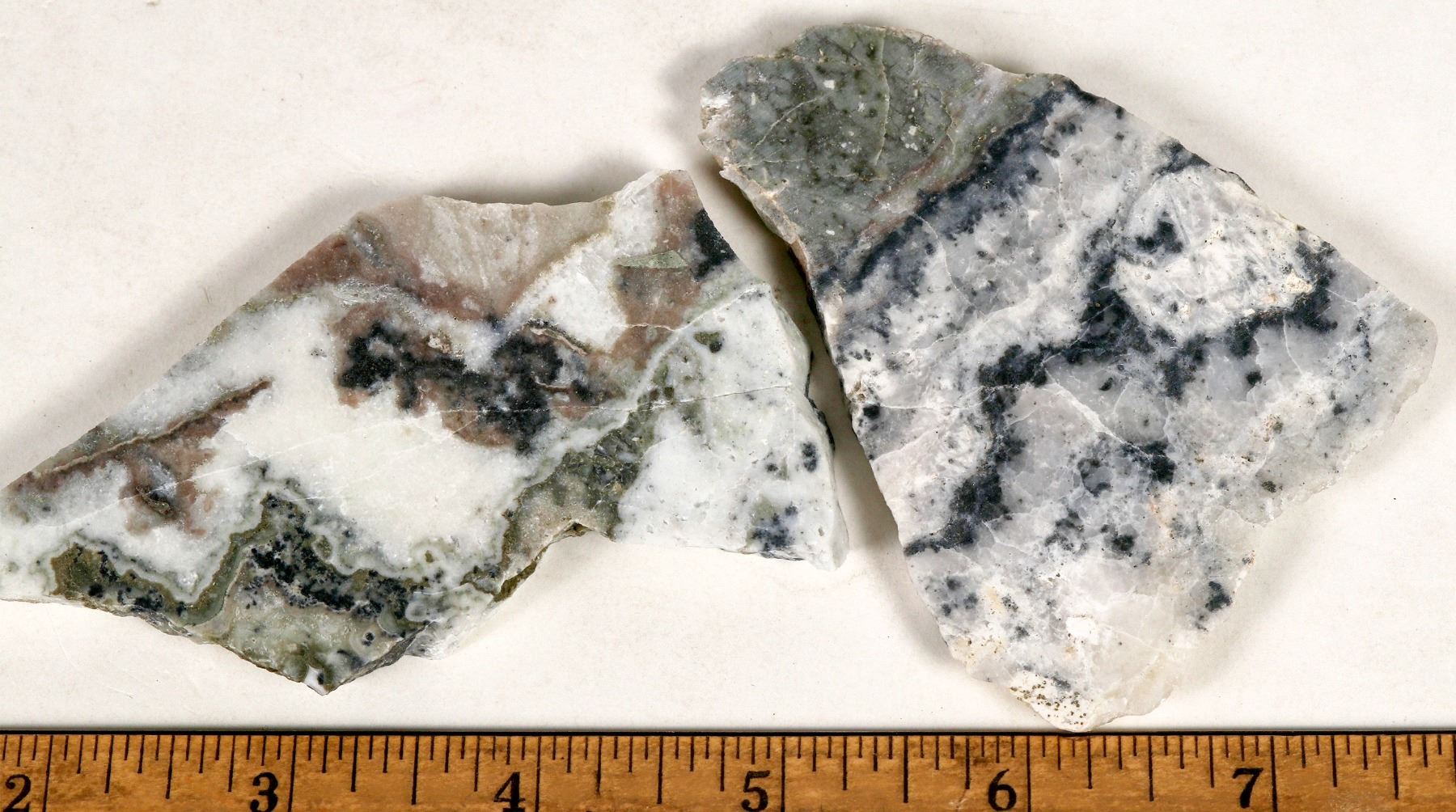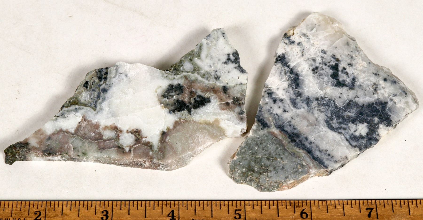 Two cut slabs with fine-grained native gold all throughout from the Ken Snyder Mine at Midas. The Ken Snyder Mine is located in the Gold Circle Mining District, Elko County, Nevada. Please see photos for dimensions.