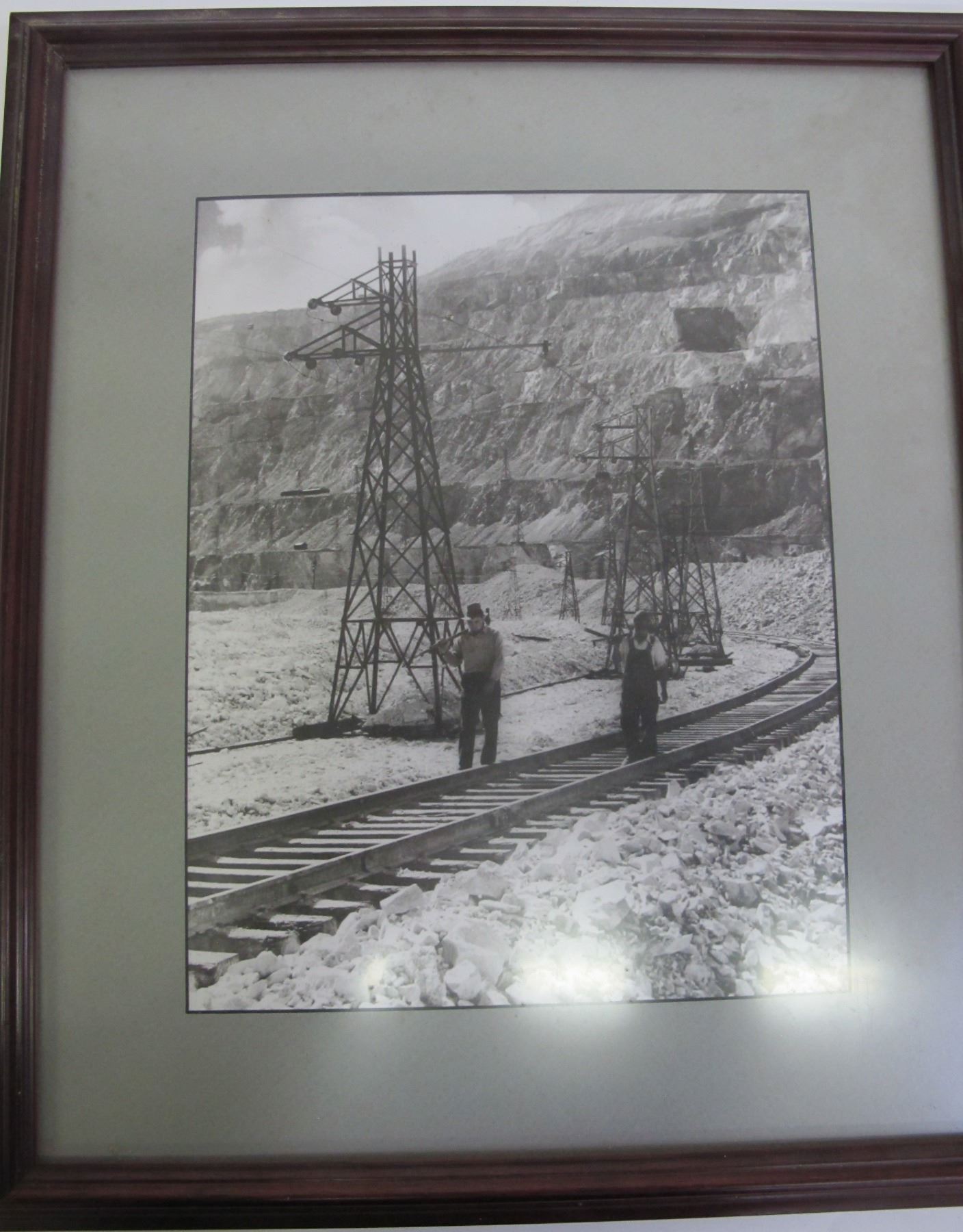 Framed b/w photo of miners along RR track at Kennecott Utah Copper by WM Rittase. Photo approx 13x10" State: Utah City: Bingham Date: c1940's