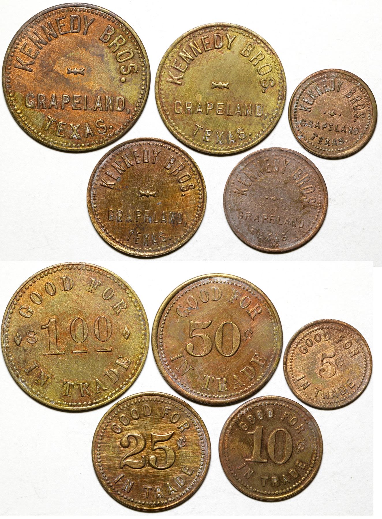 Five pieces, GF 5c, 10c, 25c, 50c, and $1.00 IT. All nice condition State: Texas City: Grapeland Date: HWAC# 85314