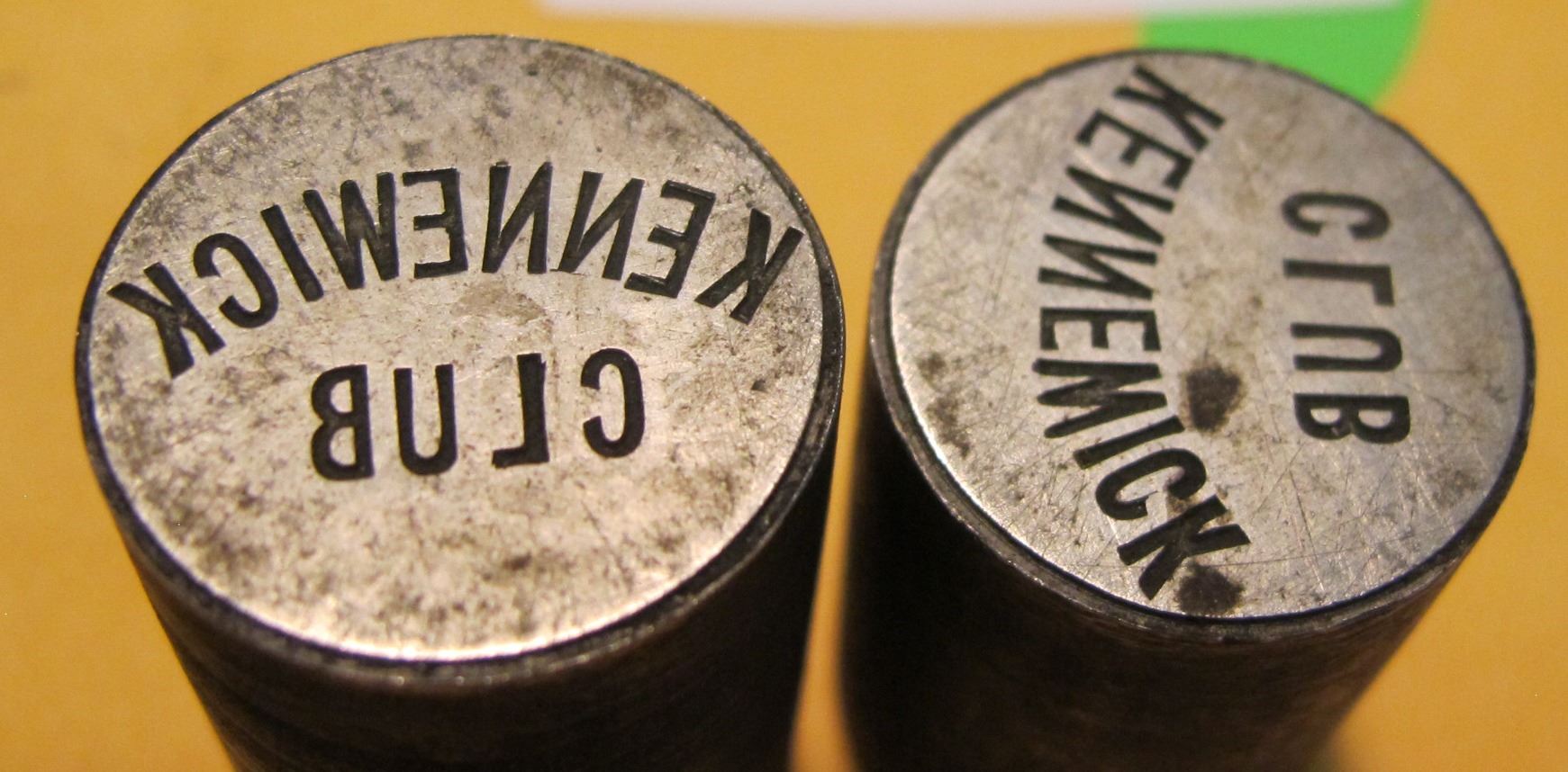 2 token dies self identified from Kennewick, WA. 2 21mm: Kennwick, WA. Northwest Territorial Mint Historical Token Die Collection