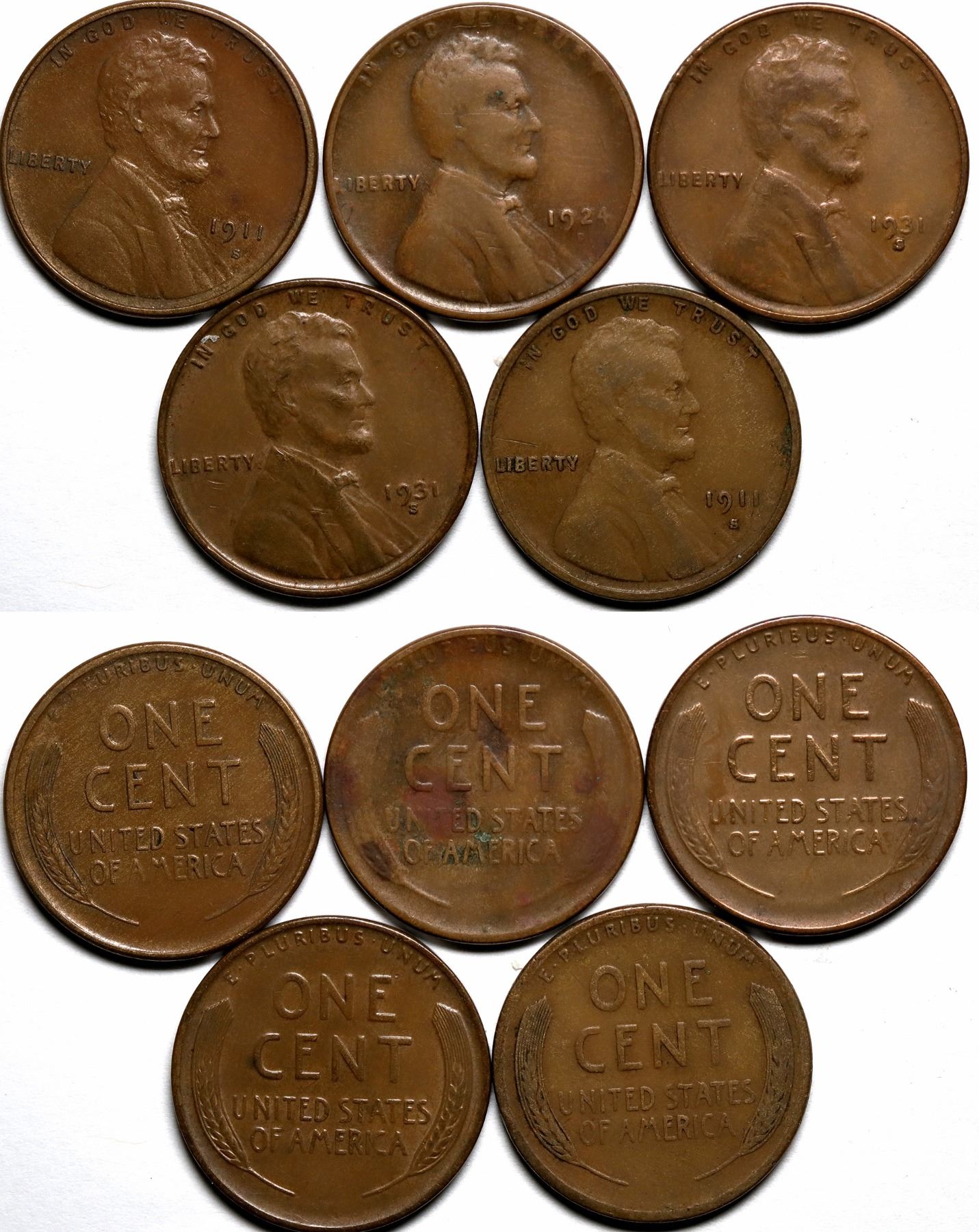 Lot of five: 1) 1911-S, VF; 2) 1911-S, F; 3) 1924-D, VG; 4) 1931-S, EF; 5) 1931-S, VF.