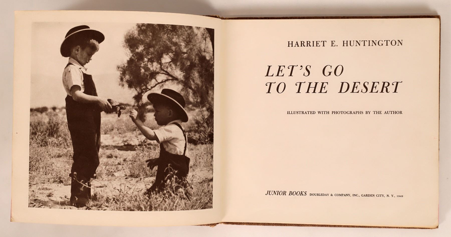 This 90-page hardcover book tells the younger set all about the desert, its beauty & danger. It was written & photographed by Harriet E. Huntington, with a copyright of 1949. Please see photos for more details. [
