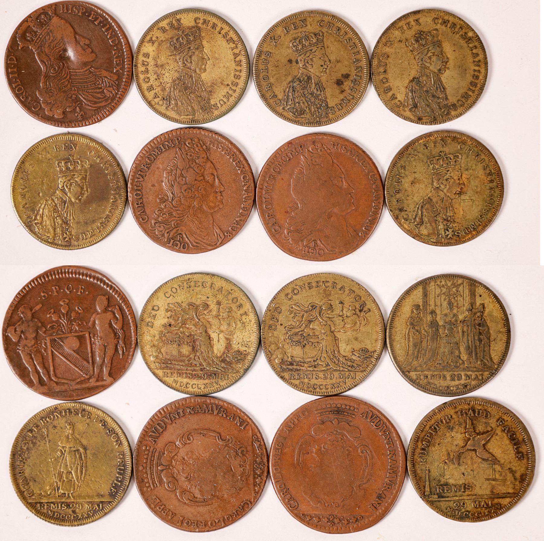 Lot of eight counters from various King Charles: Charles X: 5; Charles VI: 2; Charles II: 1.