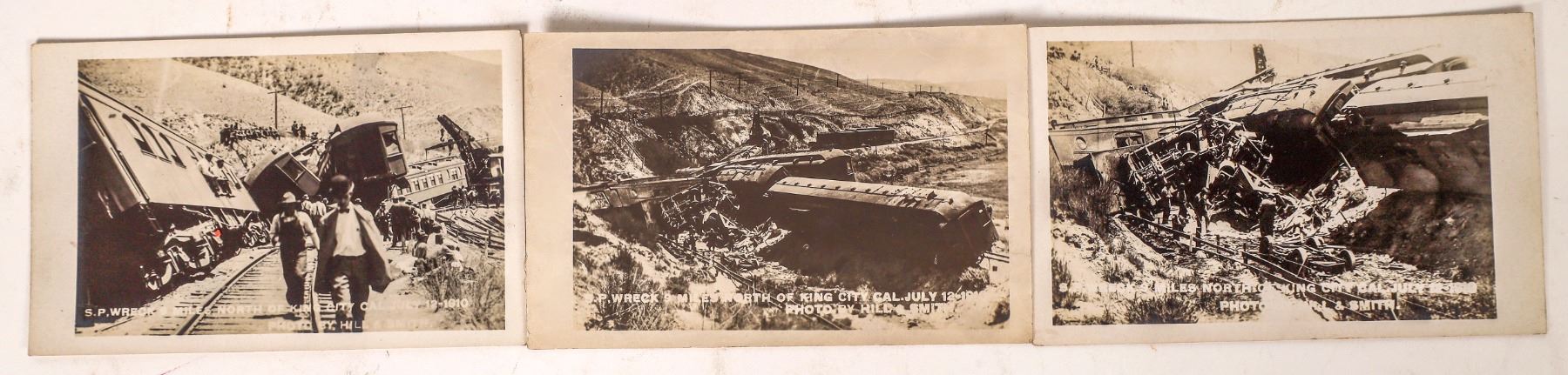 3 RPC's of the King City train wreck of 1912, photos by Hill & Smith. It's a train wreck alright! California King City