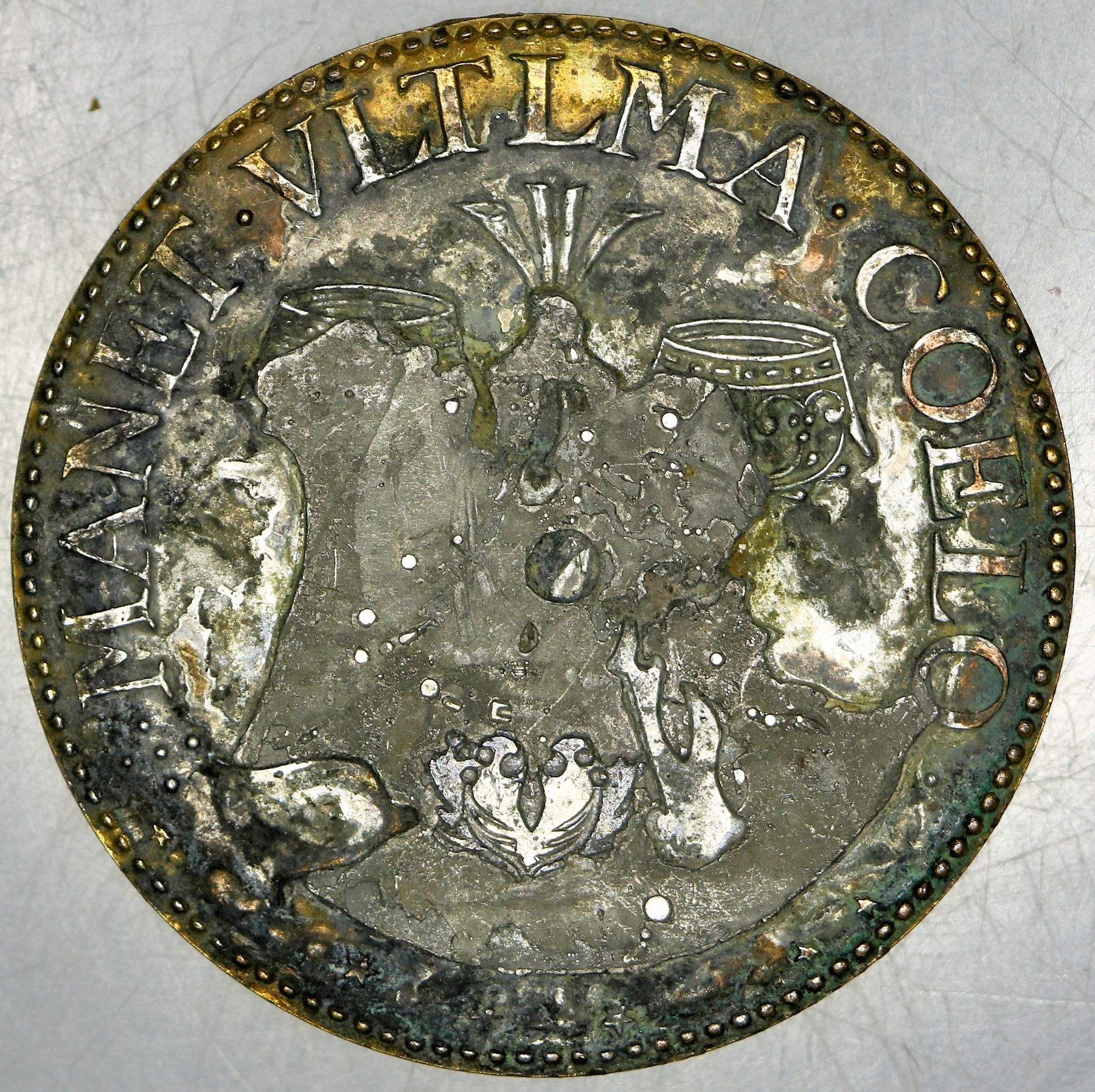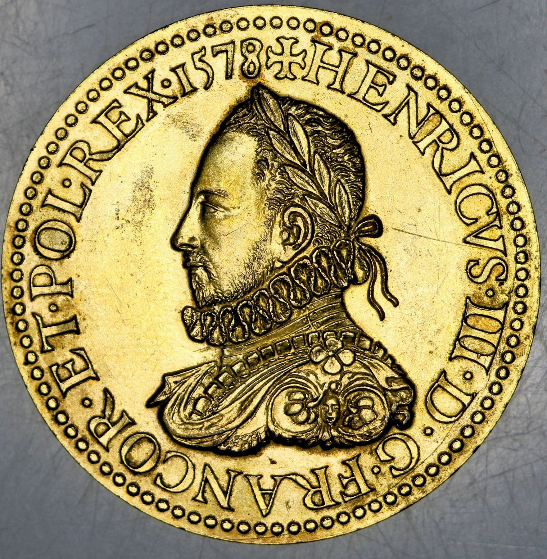 1578 France - King Henri III - The Source of Power of Henri the III by Germain Simon, bronze medal, late 19th century restrike of the original piece, gold plated obverse, reverse extremely worn.