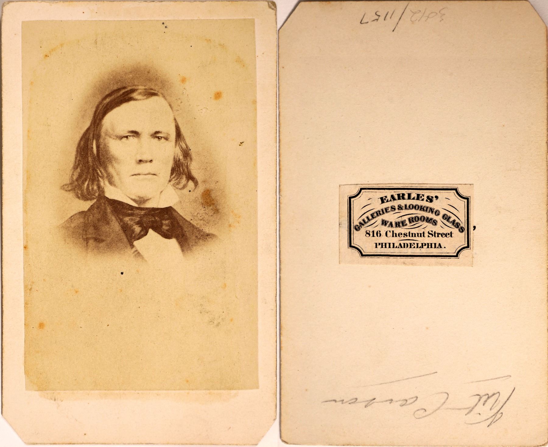 The photo was taken at Earle's Galleries in Philadelphia. They were know for their portraits of various Union Army Officers and other personalities of the time.